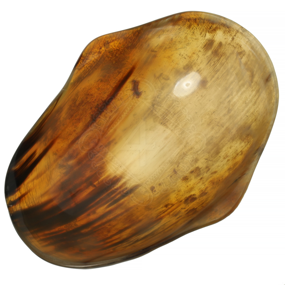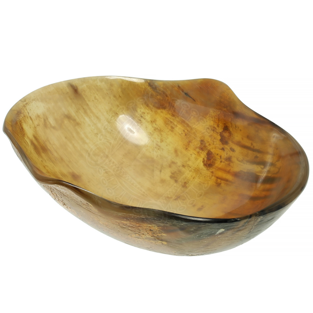 Einer der größten Vorteile von Horn ist seine thermoplastische Eigenschaft. Das bedeutet, dass das Material beim Erhitzen (z. B. in heißem Wasser oder Öl) weich wird und sich formen und biegen lässt. Nach dem Abkühlen behält es seine neue Form. Genau diese Eigenschaft ermöglichte es den mittelalterlichen Handwerkern, aus den ursprünglich konischen Hörnern breite und flache Schalen wie diese herzustellen – und das nur mit einfachen Werkzeugen.