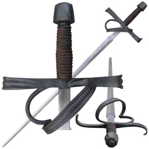 Die Schaukampfversion von diesem Renaissanceschwert hat eine Schlagkante von 2-3mm und eine abgerundete Klingenspitze. Ein Renaissanceschwert mit diesen Eigenschaften kann zum Schaukampf verwendet werden.