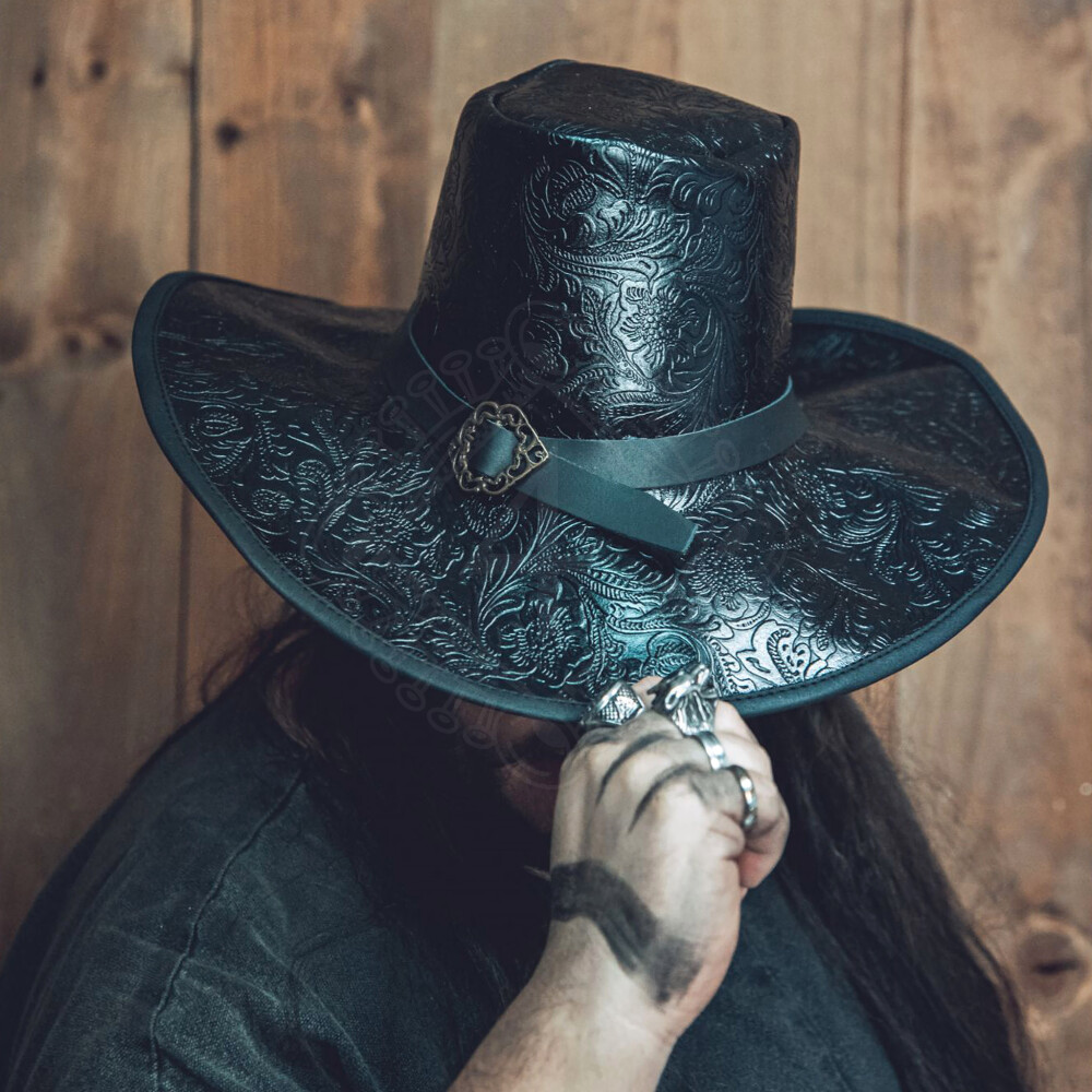 Lederhut Van Helsing mit dekorativer Prägung, Größe M