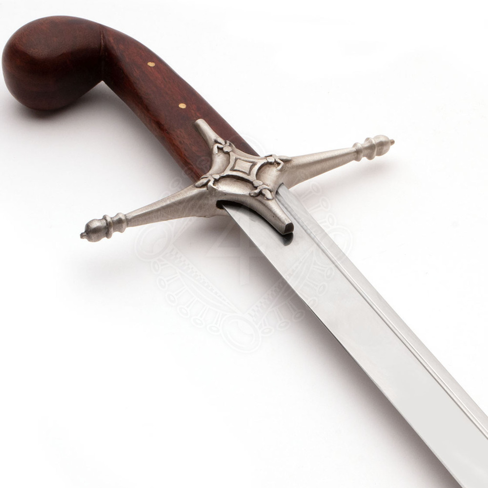 Dies ist ein wunderschönes und romantisches Schwert, das aus der Hank-Reinhardt-Sammlung nachgebaut wurde. Die Klinge ist sehr effektiv, da sie sowohl ziehende Schnitte als auch Hiebe ausführen kann, und die Spitze ist sehr geeignet für den oft verwendeten „Hakenstich“. Hergestellt aus kohlenstoffreichem Stahl von Windlass Steelcrafts®. Der Griff ist aus Holz, und die Parier und Scheidenbeschläge sind aus Stahl.