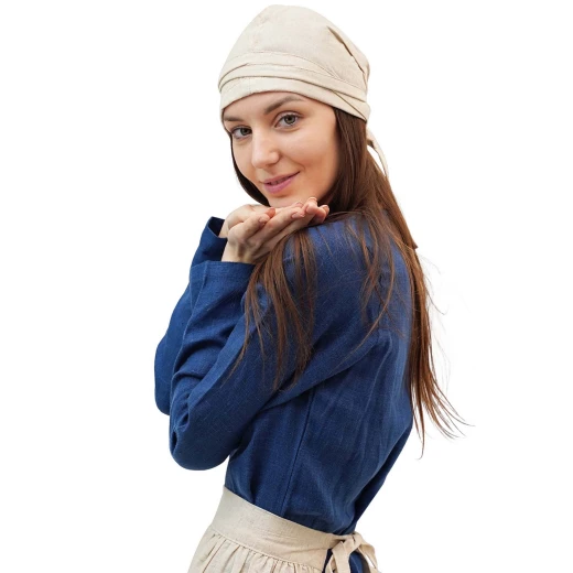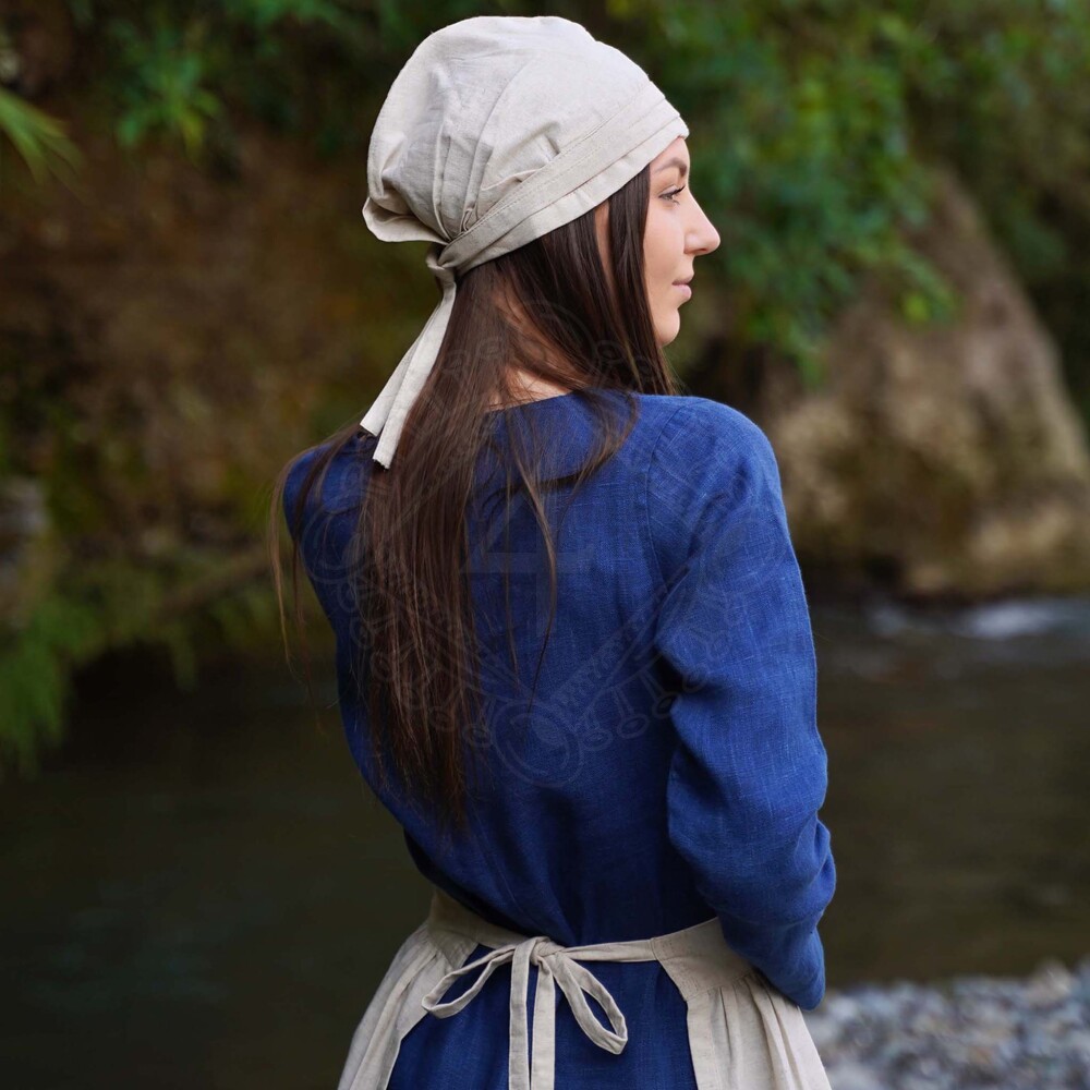 Mittelalterliche St. Birgitta Damenkopfbedeckung aus naturfarbenem Leinen und Baumwollgemisch