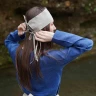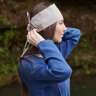 - Konstruktion: Ein breiter Stoffstreifen über der Stirn (ca. 10 cm) verjüngt sich nach hinten und ist mit vier Bindebändern versehen. Dies ermöglicht variable Bindemöglichkeiten und einen festen Sitz am Kopf, ohne dass das Band verrutscht.