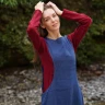 - Rot (Weinrot): 100 % recycelte Wolle. Ein dichter, warmer Stoff mit schöner Struktur, der sehr authentisch wirkt.