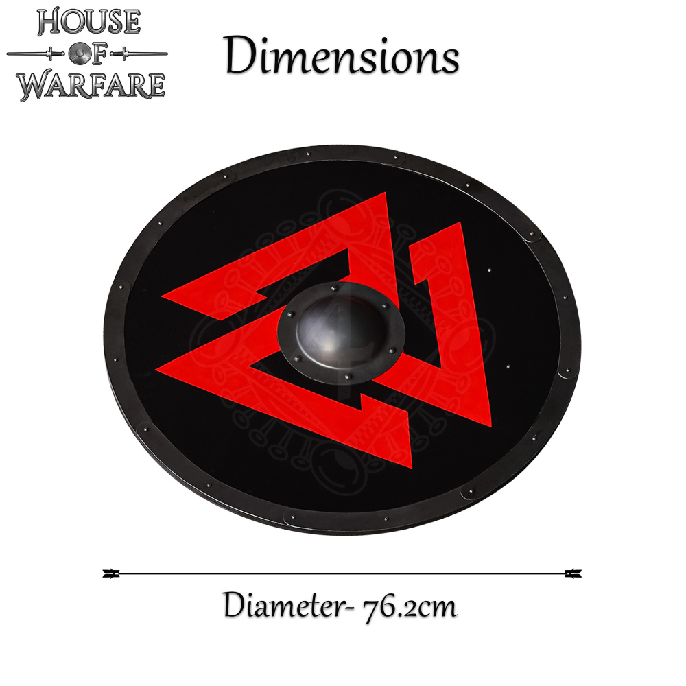 Dieser Schild ist für echte Krieger bestimmt, sei es auf dem Feld einer historischen Nachstellung, einer LARP-Schlacht oder beim Training des historischen Schwertkampfes. Seine realistischen Maße (Durchmesser 76 cm) und sein Gewicht (fast 5 kg) machen ihn zu einem imposanten und funktionellen Element deiner Wikinger-Ausrüstung. Gleichzeitig ist er dank seines ikonischen Designs eine wunderschöne Wanddekoration für jeden Liebhaber der nordischen Mythologie, der seinem Zuhause oder Vereinsheim eine authentische Atmosphäre verleihen möchte.