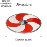 - Design: 8 rot-weiße Spiralen auf schwarzem Grund
