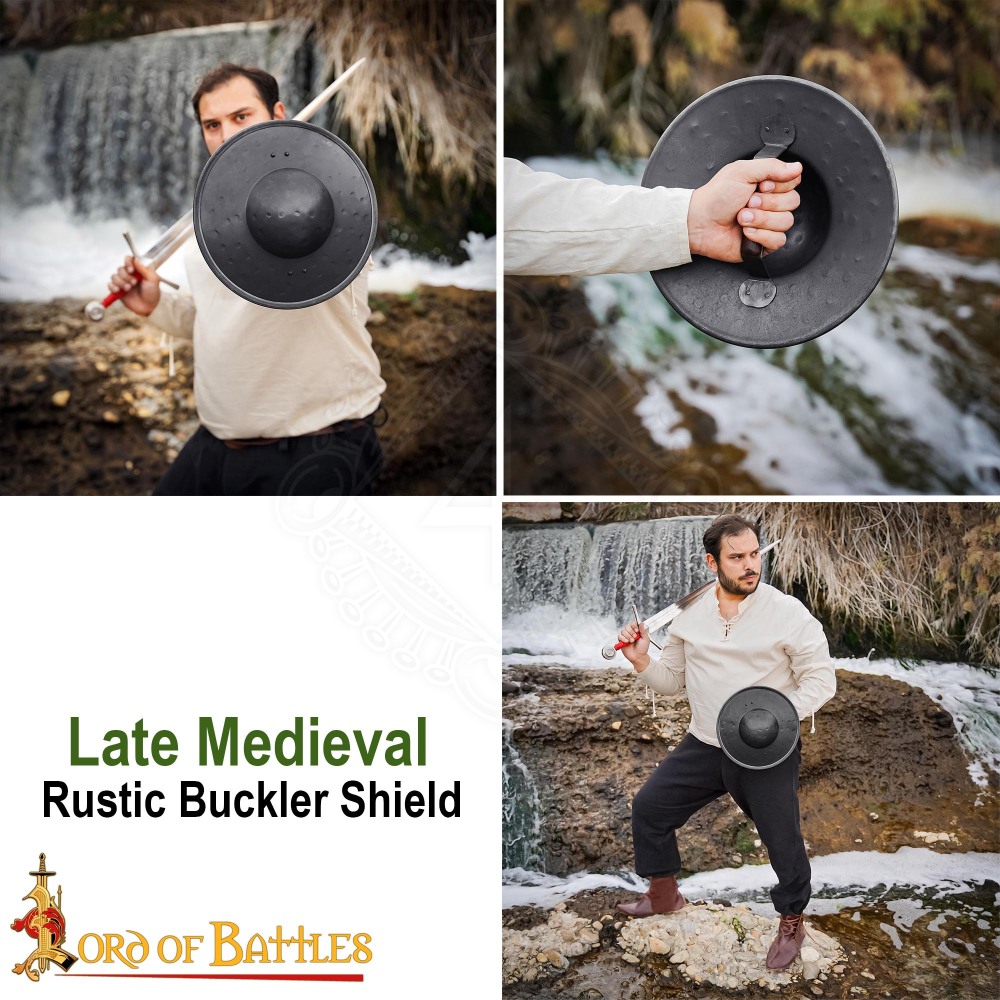 Dieser Buckler aus Stahl ist eine großartige Ausrüstung für Schwertkämpfe. Er ist gut verarbeitet und sein Aussehen mit den nachgeahmten Schmiedespuren wird dein Auge erfreuen. Weitere Produktinformationen ...