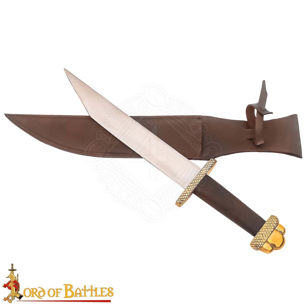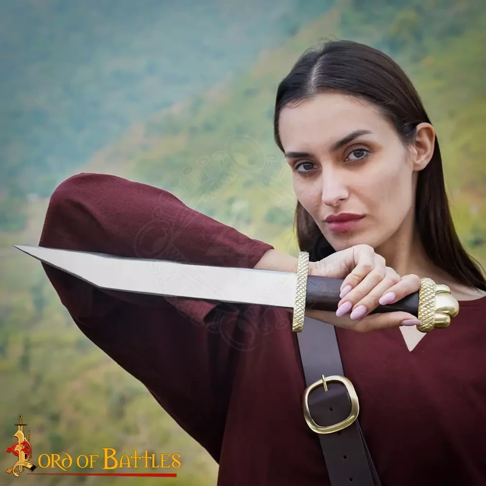 Ob Du einen Wikinger-Räuber, einen angelsächsischen Thane oder einen fränkischen Krieger darstellst, dieses Sax wird die perfekte Ergänzung für Dein Kostüm sein. Sein imposantes Aussehen verleiht Deinem Charakter Authentizität und Respekt. Es eignet sich hervorragend als Ausstellungsstück, Kostümteil oder Requisite für Theater- und Filmaufführungen.