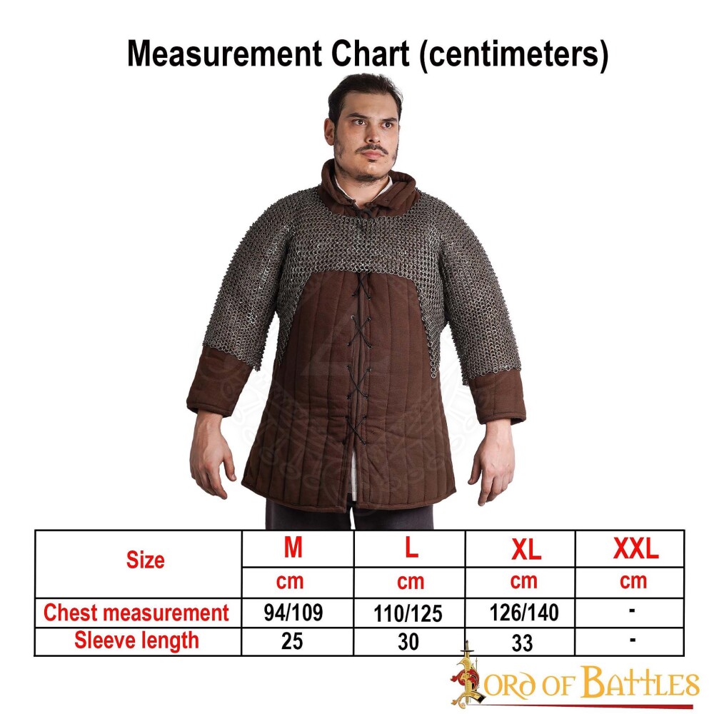 Die Maße in der Tabelle sind die Maße der Rüstung selbst. Berücksichtige bei der Auswahl, dass du darunter einen Gambeson oder eine andere Kleidung tragen wirst.