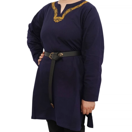 Wikinger Tunika mit Stickerei Blau, lange Ärmel - Outlet