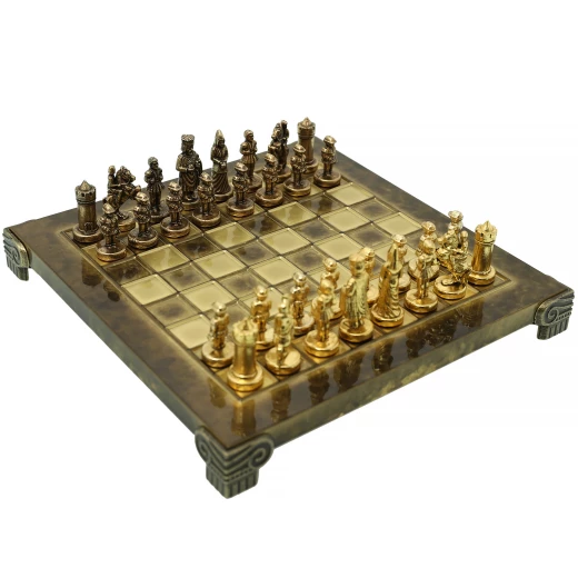 Handgefertigtes Schachspiel Byzantinisches Reich, Gold & Braun 20x20cm