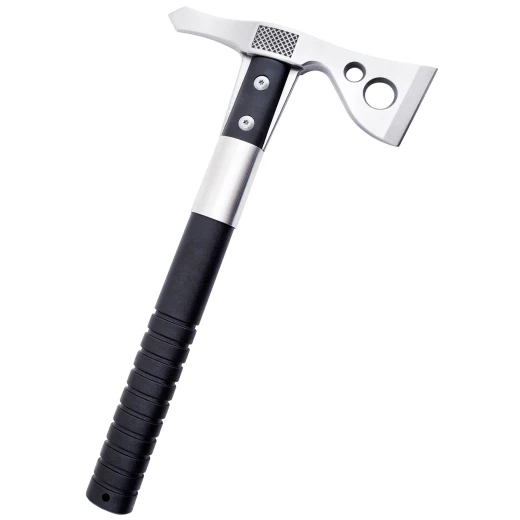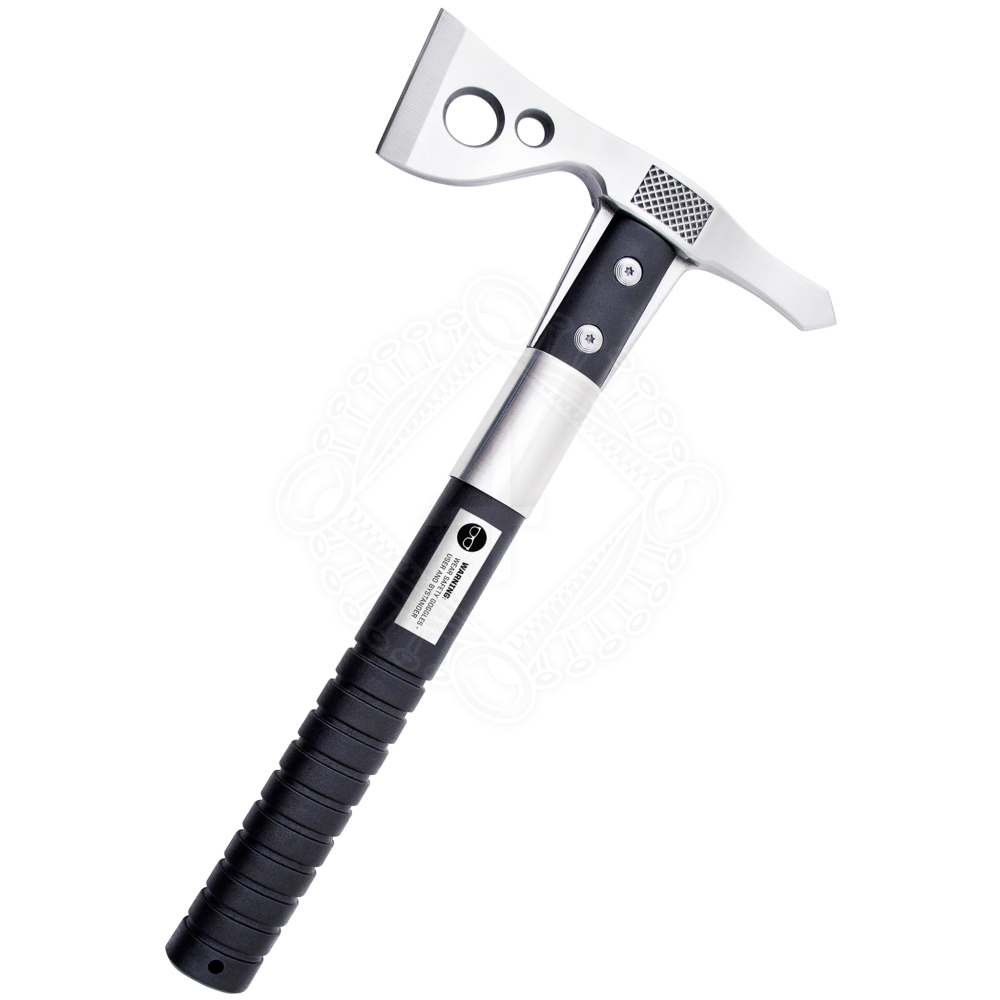 Der Axtkopf besteht aus poliertem 420er Edelstahl und ist mit hochbelastbaren Schrauben und einer Stahlzwinge am ballistischem Polymergriff befestigt, um ein Höchstmaß an Stabilität zu gewährleisten.