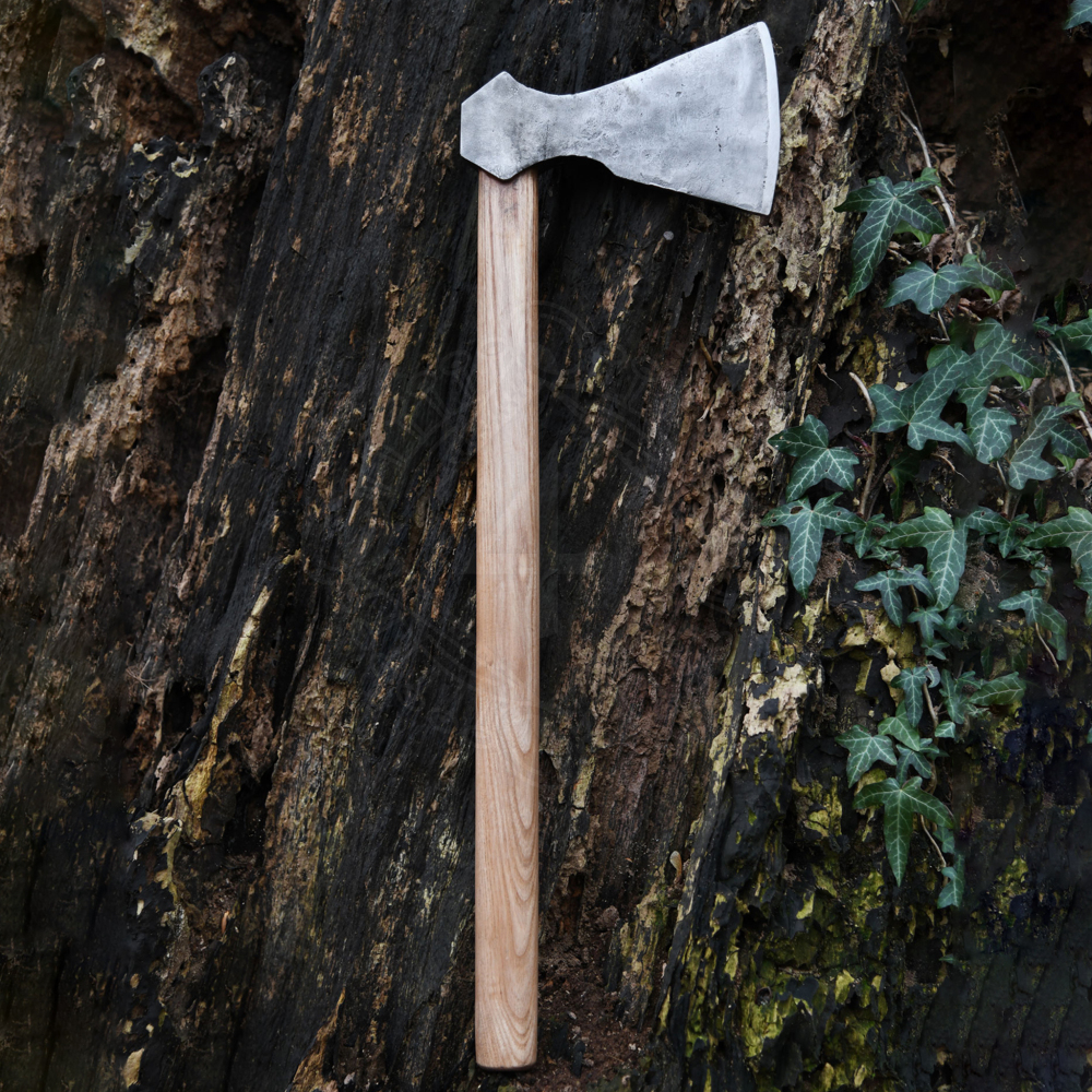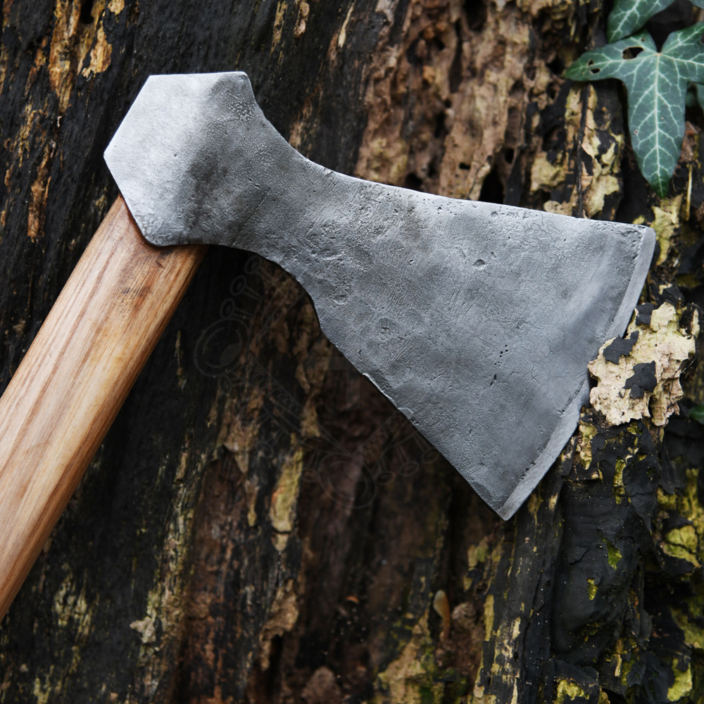 Bei der hier angebotenen Wikingeraxt entspricht die Kopfform dem Petersen Typ F. Das Blatt dieser Axt besteht aus Kohlenstoffstahl und ist von Hand geschmiedet. Der Axtstiel ist aus robustem Eschenholz gefertigt.