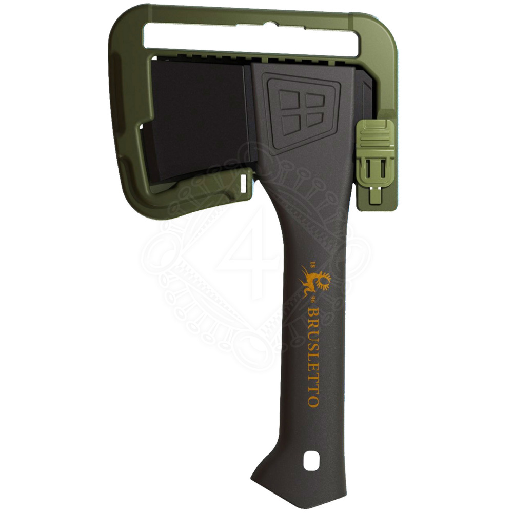 Die Axt kann leicht in die Tasche gesteckt werden, da sie einen kompakten Schutzclip hat, der die Schneidkante schützt.
