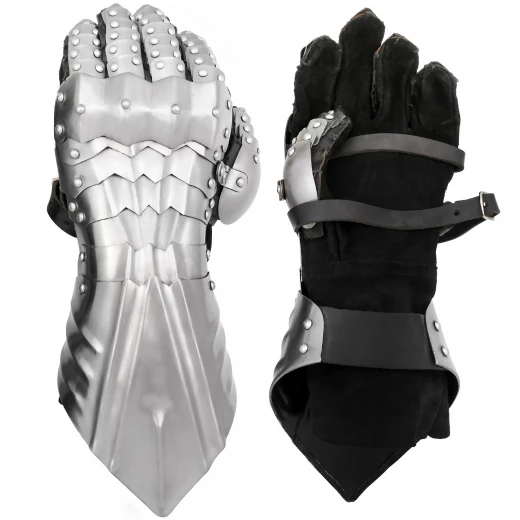 Diese aufwendig gearbeiteten, schaukampftauglichen Plattenhandschuhe wurden aus 1,3 mm starkem Stahl handgefertigt. Innen mit Handschuh aus weichem Leder. Weitere Produktinformationen ...