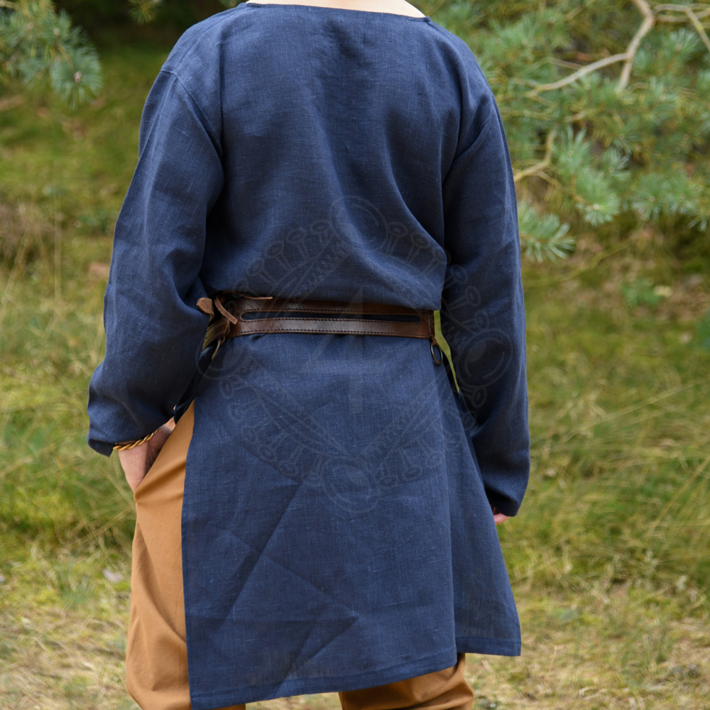 Dieses schöne dunkelblaue Leinentunika ist das perfekte Kleidungsstück für den Mittelaltermarkt, LARP- und Reenactment-Events. Die aus 100% Leinen gefertigte Tunika überzeugt durch ihren angenehmen Tragekomfort und ihren natürlichen Kühleffekt, der sie ideal für warme Sommertage macht.