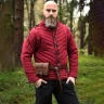 1xDieses Rüstwams von Ulfberth ist aus drei Lagen Stoff hergestellt: einer äußeren Lage aus Baumwollstoff (Canvas), einer Polsterlage/Wattierung aus Polyester und einem Innenfutter aus Baumwolle. Die unterschiedlichen Steppungen fixieren die Wattierung und erhöhen den Tragekomfort. Geschlossen wird das Wams mit Nesteln. Weitere Nestelbänder mit gestickten Ösen am Schoß und am den Ärmel ermöglichen es Beinlinge oder Plattenteile zu befestigen. Die besondere Schnittführung des erweiterten Armlochs ist anfangs etwas gewöhnungsbedürftig aber typisch für das ausgehende 14. Jahrhundert. Der hohe Kragen hat ebenfalls eine besondere Schnittführung und erhöht den Tragekomfort von Rüstungsteilen am Hals enorm. Weitere Produktinformationen ...