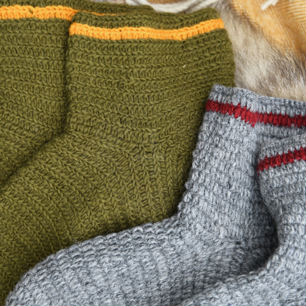Diese schönen handgefertigten dicken Wollsocken sind aus 100% Schurwolle gehäkelt und daher ideal für kalte Wintertage. Das Häkelmuster ist dem traditionellen Nadelbinden nachempfunden, das schon die Wikinger und andere Völker im frühen Mittelalter verwendeten. Durch das Häkeln entsteht eine dichte, aber flexible Struktur, die dafür sorgt, dass die Socken zuverlässig warm halten. Zudem bietet Schafwolle eine exzellente Wärmeisolierung, sodass deine Füße selbst bei kälteren Temperaturen angenehm warm bleiben. Sie sind aber nicht nur ideal als dicke Socken für draußen, sondern eignen sich auch perfekt als Kuschelsocken für zu Hause. Weitere Produktinformationen ...