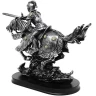 Figur einer Ritters mit einem geschlossenen Visierhelm und Schwert auf einem gepanzerten Pferd