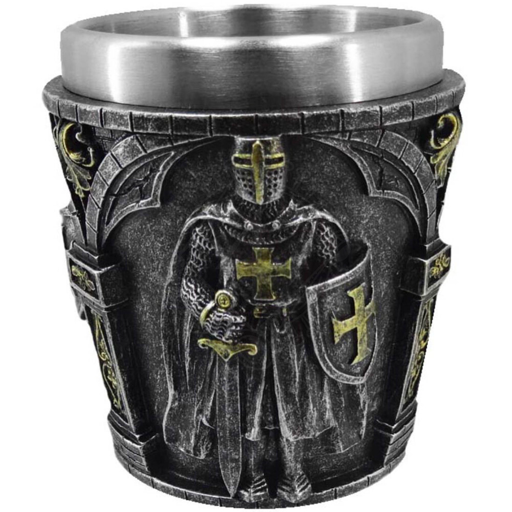 4 Kreuzritter Schnapsgläser 40ml, silbernes Patina-Finish