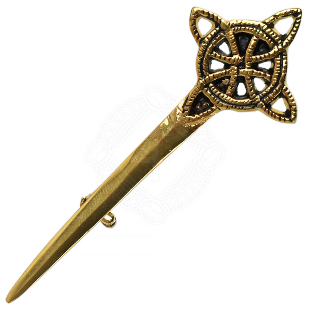 Diese detaillierte keltische Nadel verleiht deinem Kilt genau den richtigen Touch! Handgegossenes Messing mit einem kleeblattförmigen Ornament, in das ein keltischer Knoten mit acht äußeren Vorsprüngen eingebettet ist, die eine Art vierblättriges Kleeblatt bilden. Egal, ob du zu einem historischen Ereignis oder einem keltischen Fest gehst oder einfach nur dein Outfit aufpeppen willst, diese Nadel wird zu deinem unverzichtbaren Begleiter. Weitere Produktinformationen ...