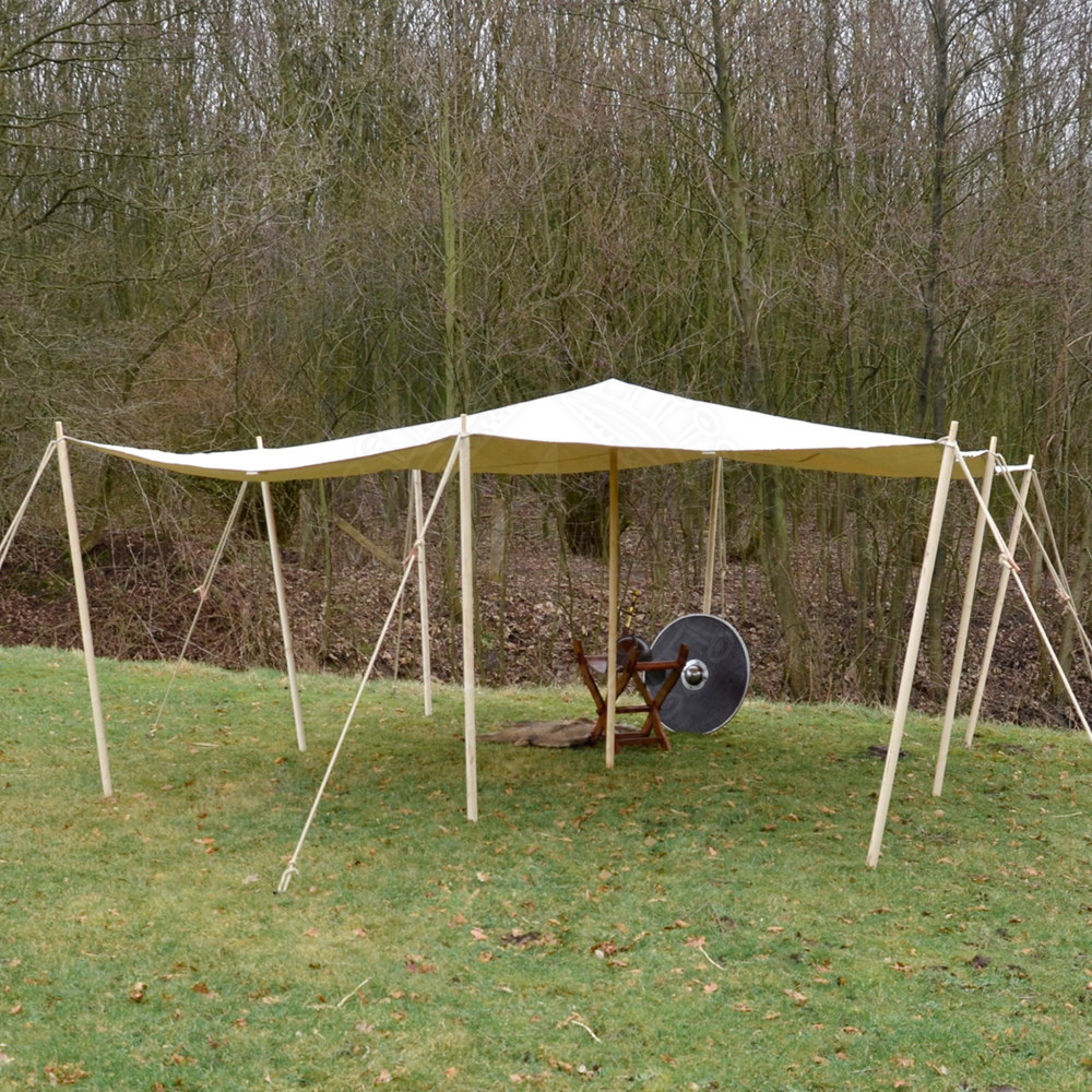 Diese viereckigen Planen aus Segeltuch sind ideal für alle Outdoor-Zwecke, ob als Unterstand, Sonnenschutz, Regenplane oder Lagerplane für Mittelalter, Reenactment, LARP oder einfach den heimischen Garten. Auch können mehrere Mittelalterzelte hervorragend miteinander verbunden werden, so dass man trockenen Fußes von einem Zelt ins andere gelangen kann oder gleich den Lagermittelpunkt vor Regen und Sonne geschützt hat. Die Planen können mit ein paar Seilen auch zwischen Bäumen gespannt werden. Weitere Produktinformationen ...