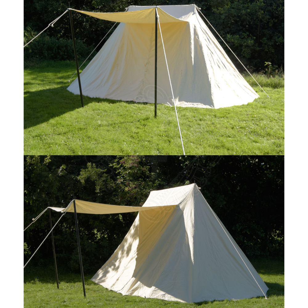Das historische Sachsenzelt ist gegen Pilz und Fäulnis imprägniert. Der Stoff ist aus reiner Baumwolle und mit 340g/m2 stark und reißfest, trotzdem sehr günstig und macht dieses mittelalterliche Zelt zu einem unentbehrlichen Ausrüstungsgegenstand für Mittelaltermärkte, Heerlager oder LARP.
