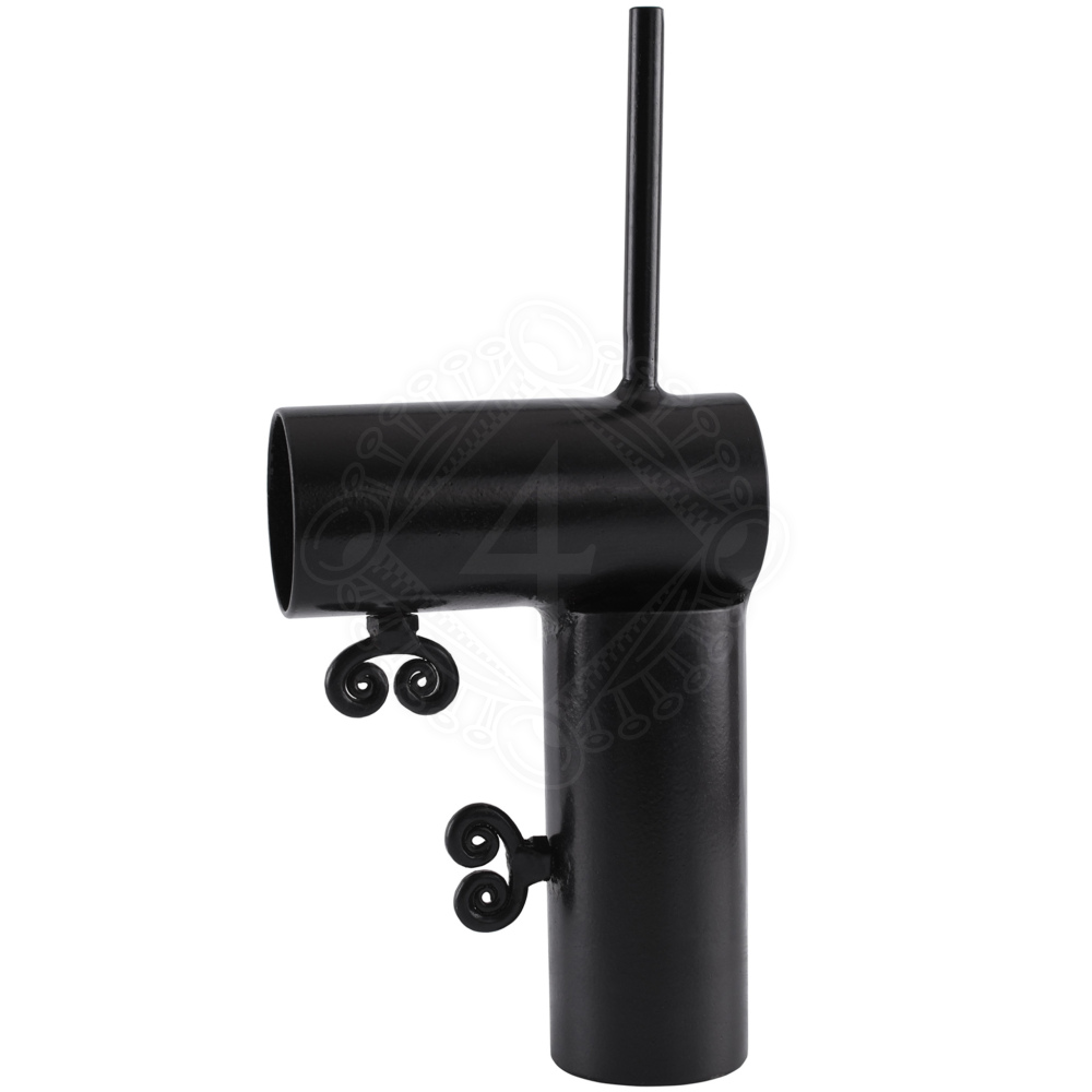 Mit dem schwarzlackierten Eckverbindungsstück aus Eisen kannst du die Zeltstangen für dein mittelalterliches Zelt selbst bauen.