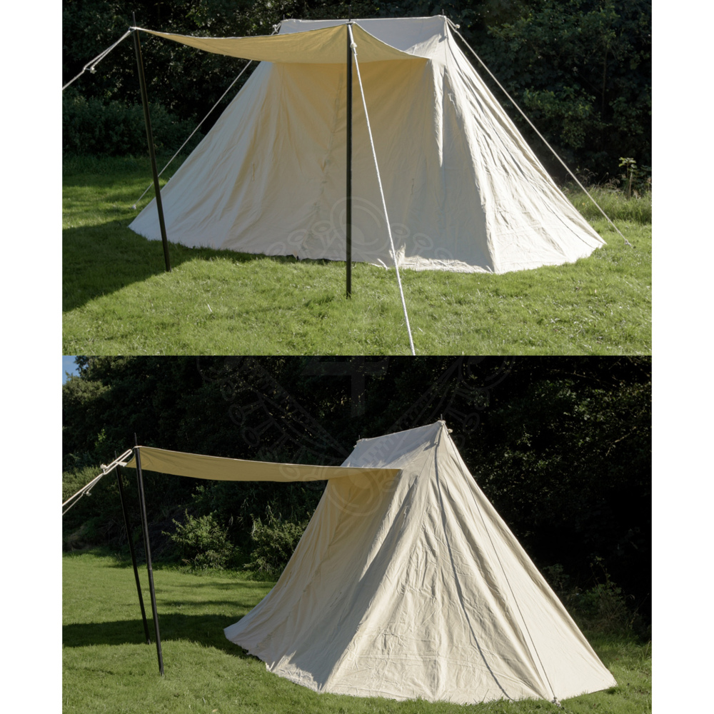 Das historische Sachsenzelt ist gegen Pilz und Fäulnis imprägniert. Der Stoff ist aus reiner Baumwolle und mit 425g/m2 besonders stark und reißfest, trotzdem sehr günstig und macht dieses mittelalterliche Zelt zu einem unentbehrlichen Ausrüstungsgegenstand für Mittelaltermärkte, Heerlager oder LARP.
