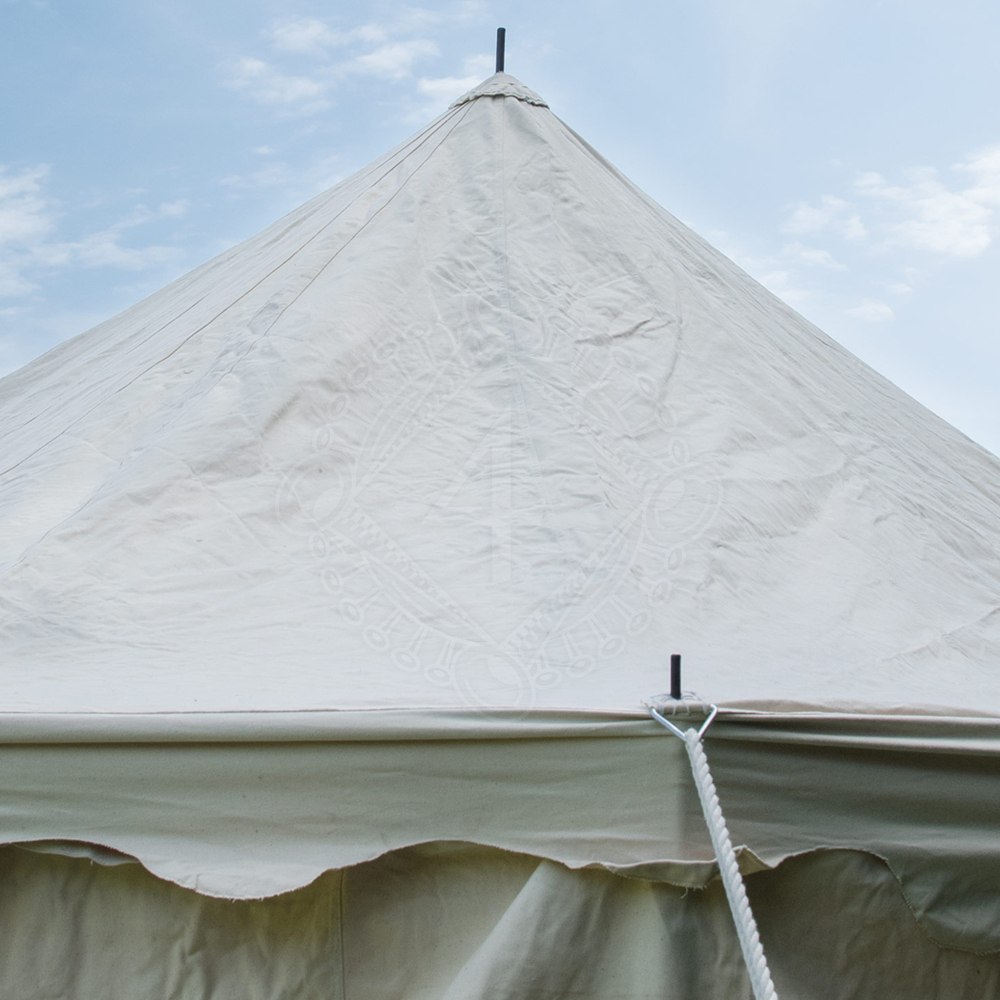 Das historische Ritterzelt ist gegen Pilz und Fäulnis imprägniert. Der Stoff ist aus reiner Baumwolle und besonders stark und reißfest, trotzdem sehr günstig und macht dieses mittelalterliche Zelt zu einem unentbehrlichen Ausrüstungsgegenstand für Mittelaltermärkte, Heerlager oder LARP.