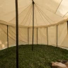 Die Seile nicht zu stark spannen, denn Naturmaterialien wie Holz und Baumwolle verändern sich bei Luftfeuchtigkeit und brauchen Platz zum Ausdehnen bzw. Zusammenziehen. Somit verhinderst Du, dass sich z. B. die Öffnungen für die Stangen im Dach weiten und später Wasser die Möglichkeit hat, einzudringen. Zur Nacht empfehlen wir, die Seile etwas zu lockern, da die Luftfeuchtigkeit stark steigt und die Möglichkeit besteht, dass zu großer Druck auf Dein Zelt ausgeübt wird. Bei Regen oder hoher Luftfeuchtigkeit bitte ebenfalls die Seile etwas lockern.