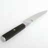Dieses Messer besticht auf den ersten Blick durch seine klaren Linien und das klassische Design. Die Klinge mit einer Länge von ca. 135 mm hat eine universelle Form, ideal für eine Vielzahl von Küchenaufgaben. Sie ist aus hochwertigem rostfreiem Edelstahl 440 gefertigt und auf Hochglanz poliert, was ihr nicht nur ein attraktives Aussehen verleiht, sondern auch die Reinigung erleichtert. Auf der Klinge ist dezent das Herstellerlogo "GLADIUS" angebracht. Der Griff aus dunklem, luxuriösem Ebenholz ist ergonomisch geformt für einen komfortablen und sicheren Halt. Er wird durch eine elegante Metall-Endkappe abgeschlossen und ist mit einer Niete verziert, was die Robustheit und das traditionelle Erscheinungsbild des Messers unterstreicht. Die Gesamtlänge des Messers beträgt ca. 255 mm und das angenehme Gewicht von ca. 110 g sorgt für eine hervorragende Handhabung.