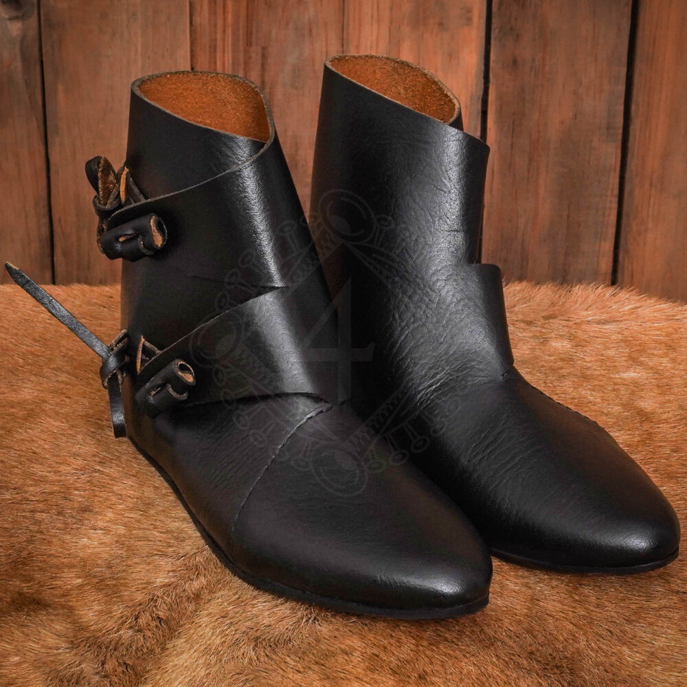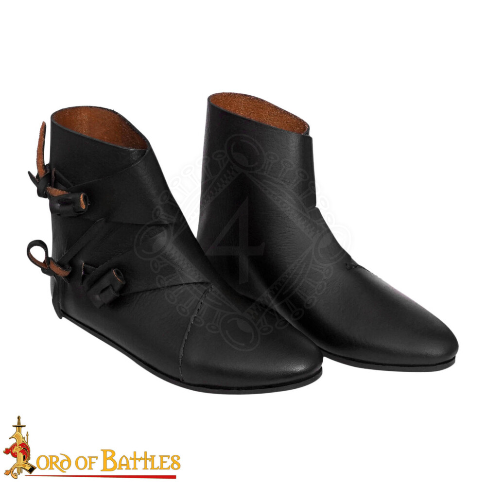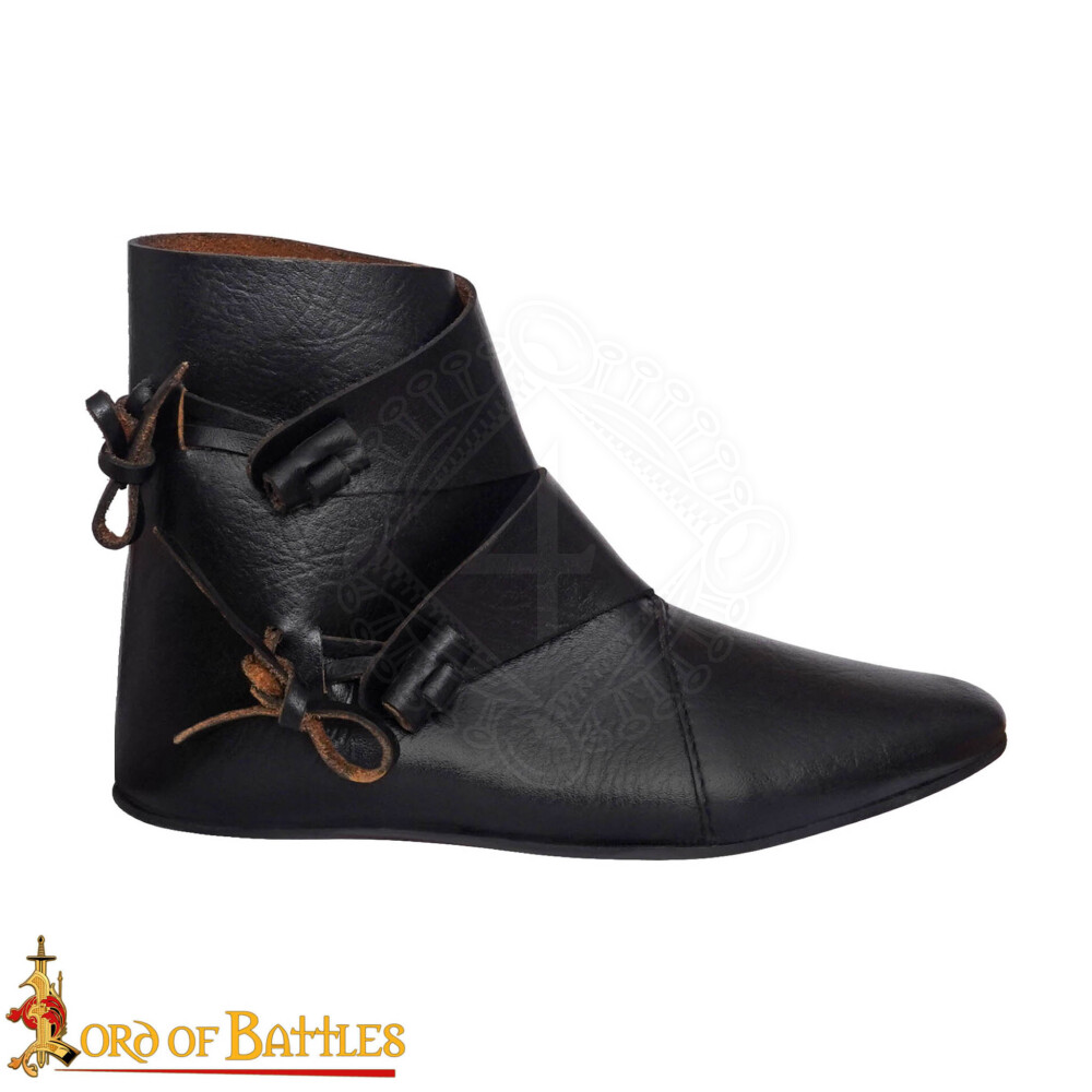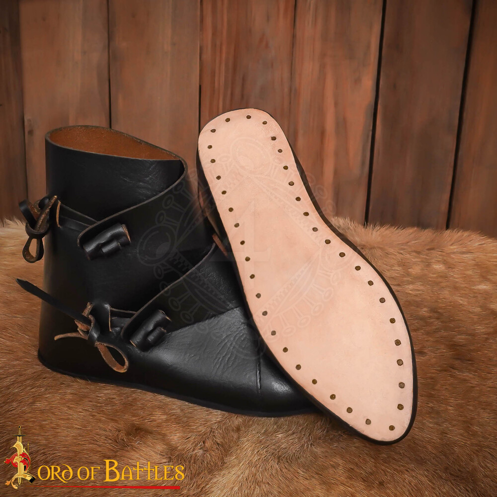 Frühmittelalterliche Wikingerschuhe nach Jorvik-Art, 9.–10. Jahrhundert, schwarz