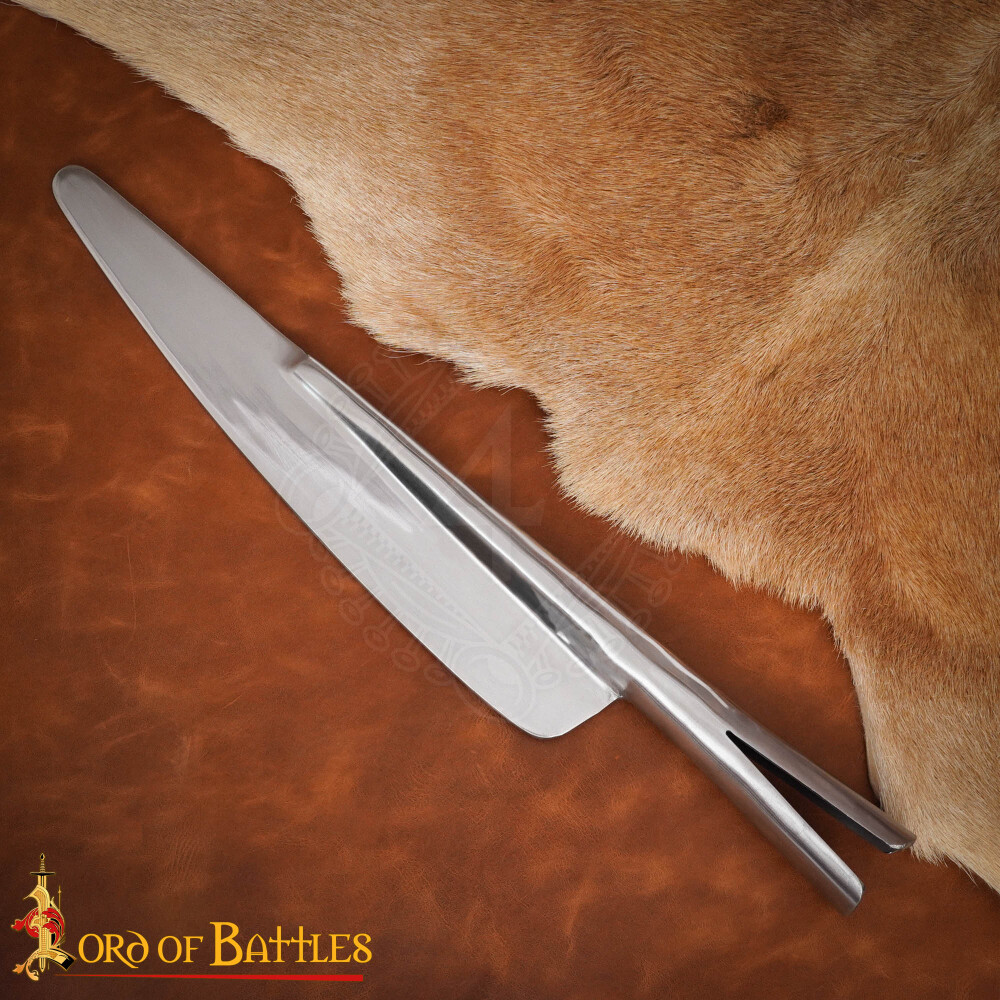 Schmiede deinen eigenen legendären Wikingerspeer mit dieser massiven, handgeschmiedeten Speerspitze. Dieses Stück, inspiriert von archäologischen Funden aus dem 10. und 11. Jahrhundert, ist die perfekte Nachbildung einer der am weitesten verbreiteten Speerspitzen der Wikingerzeit. Ihre imposante Blattform mit einer ausgeprägten Mittelrippe macht sie nicht nur funktional, sondern auch zur visuell beeindruckenden Grundlage für deine historische Waffe. Ideal für Reenactment, LARP oder als einzigartiges Sammler- und Ausstellungsstück. Weitere Produktinformationen ...