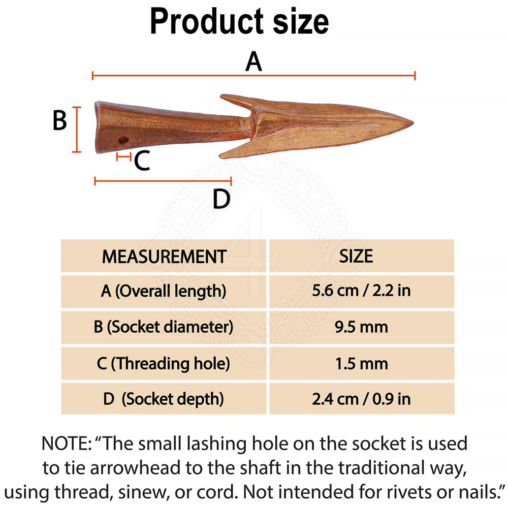 ACHTUNG: Dies ist kein Spielzeug, sondern die Replik einer funktionsfähigen historischen Waffe. Die Spitze ist scharf und kann schwere Verletzungen verursachen. Sei bei der Montage am Schaft und bei jeder Handhabung besonders vorsichtig. Wenn du dich entscheidest, einen funktionsfähigen Pfeil herzustellen, schieße nur an sicheren, dafür vorgesehenen Orten (Schießständen) und ziele niemals auf Menschen oder Tiere. Du bist für die sichere Verwendung voll verantwortlich.