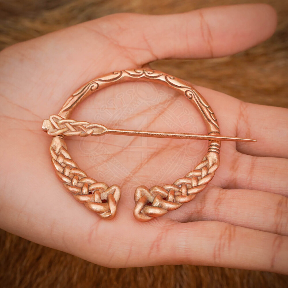 Diese präzise gefertigte Ringfibel, auch als Gewandnadel bekannt, ist von authentischen archäologischen Funden aus dem 9. bis 11. Jahrhundert inspiriert. Sie ist ein unverzichtbares Accessoire für dein historisches Kostüm, egal ob du dich auf ein LARP, ein Mittelalterfest vorbereitest oder einfach nur die nordische Kultur bewunderst. Die Fibel wird aus massiver Bronze im Wachsausschmelzverfahren hergestellt, was perfekte Details und historische Genauigkeit bei jedem Stück garantiert. Ihr Design sieht nicht nur großartig aus, sondern ist auch voll funktionsfähig, um einen schweren Wollumhang oder eine Tunika zu schließen. Weitere Produktinformationen ...