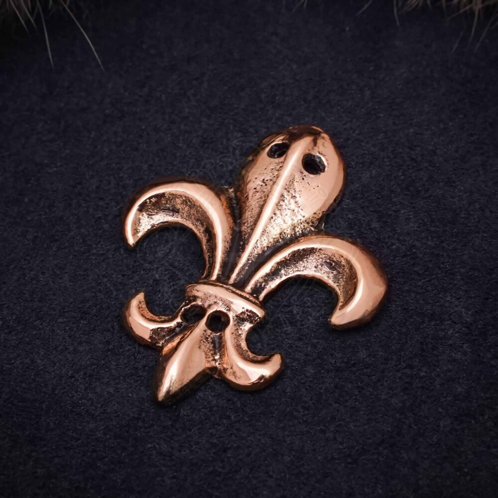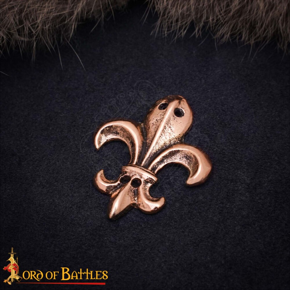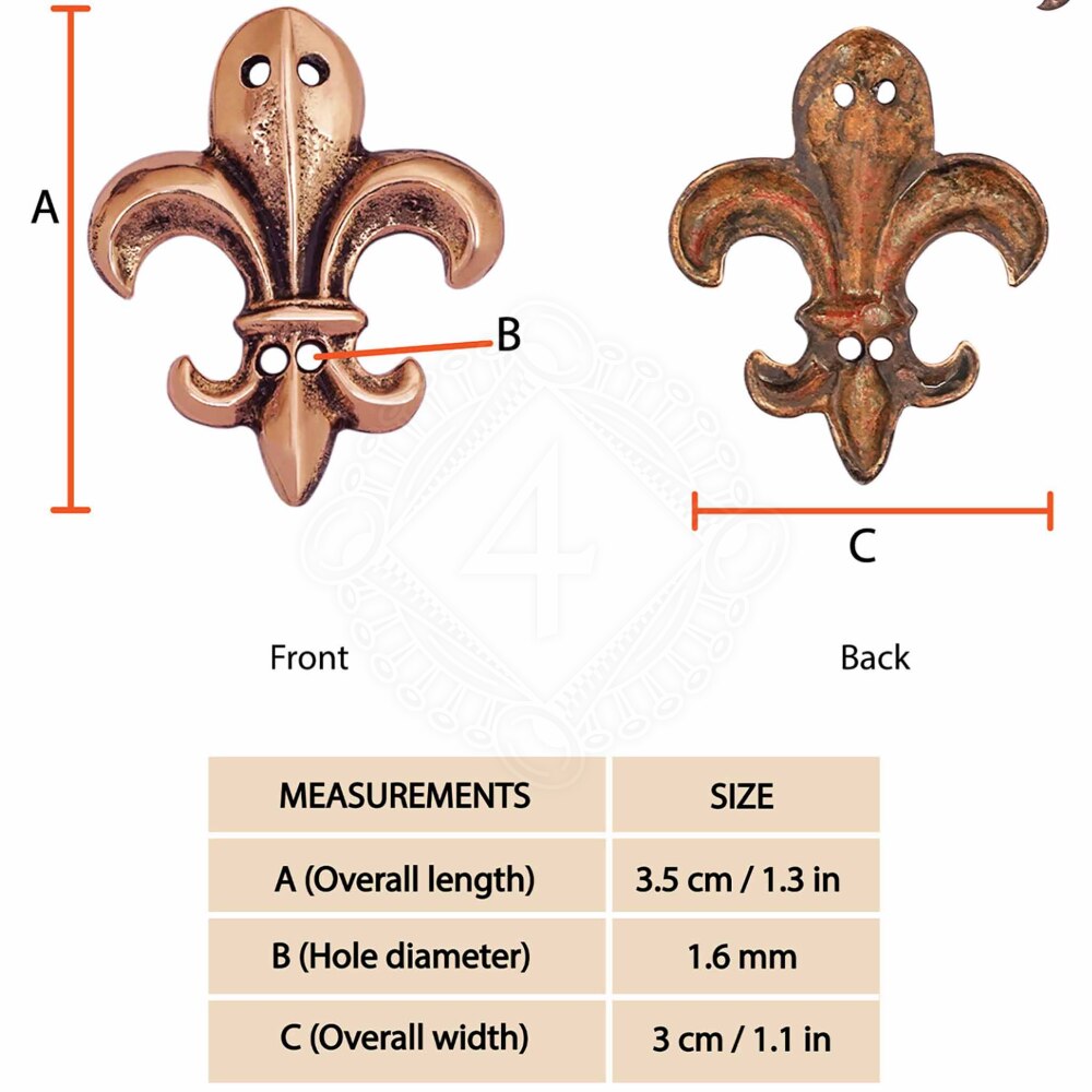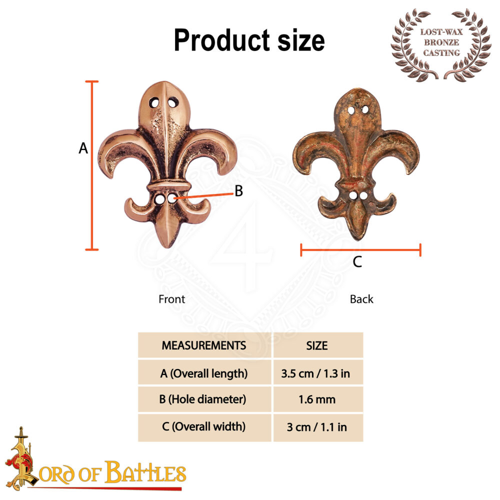 Verleihe deinem historischen Kostüm, Gürtel oder deiner Tasche einen Hauch königlicher Eleganz mit diesem Set aus drei Bronze-Beschlägen in Form der Fleur-de-Lis. Dieses ikonische Symbol, untrennbar mit der französischen Monarchie, dem Adel und dem Rittertum verbunden, war eines der am weitesten verbreiteten heraldischen Zeichen im mittelalterlichen Europa. Unser Set aus drei Stück, gegossen aus massiver Bronze, ermöglicht es dir, ein einheitliches und stilvolles Design für deine Ausrüstung zu schaffen. Jeder Beschlag wird im traditionellen Wachsausschmelzverfahren hergestellt, was scharfe Details und ein authentisches Aussehen garantiert. Dank der vier vorgebohrten Löcher ist die Anbringung ein Kinderspiel. Ob du dich dem Reenactment, LARP oder historischen Handwerken widmest, diese heraldische Lilie wird zu einer großartigen Ergänzung deiner Ausrüstung. Weitere Produktinformationen ...