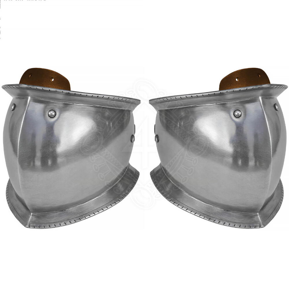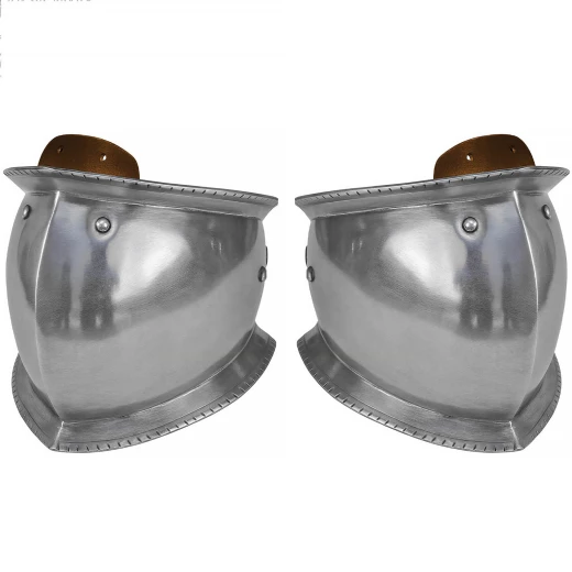 Schütze eines deiner verwundbarsten Gelenke mit diesen funktionalen und historisch authentischen Kniekacheln aus Plattenstahl. Dieses Paar Stahl-Kniekacheln, gefertigt nach Vorbildern aus dem Hochmittelalter, stellt einen grundlegenden, aber absolut entscheidenden Teil der Rüstung eines jeden Ritters, Söldners oder Fußsoldaten dar. Ihre anatomische Form und robuste Konstruktion bieten dir zuverlässigen Schutz für die Knie, egal ob du dich auf ein LARP, historisches Fechten (HEMA), eine Reenactment-Schlacht vorbereitest oder einfach nur deine Sammlung vervollständigen möchtest. Dank der polierten Oberfläche und der verzierten Ränder sehen sie zudem hervorragend aus und verleihen deinem Kostüm einen Hauch von Authentizität. Weitere Produktinformationen ...