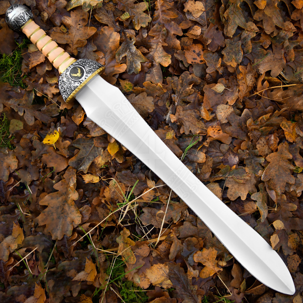 Der Gladius Hispaniensis (oder spanisches Schwert) war das Rückgrat der römischen Militärmaschinerie. Die Römer übernahmen es von Stämmen auf der Iberischen Halbinsel und perfektionierten es für ihre spezifische Kampfweise in engen Reihen hinter großen Schilden (Scuta). Im Gegensatz zu den Langschwertern der Barbaren war der Gladius primär als Stichwaffe konzipiert, was im dichten Getümmel wesentlich effektiver und tödlicher war. Interessanterweise war der Gladius eine so effiziente Waffe, dass sein Grundkonzept in der römischen Armee über fünf Jahrhunderte lang beibehalten wurde.