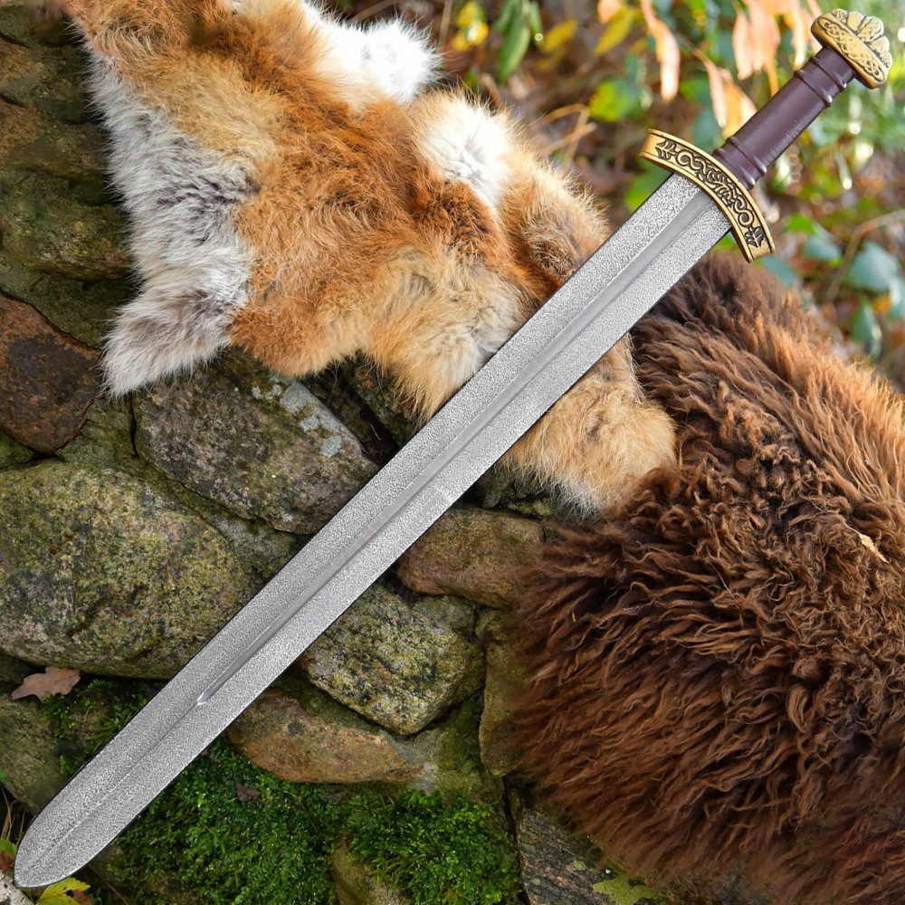 Das Design orientiert sich an Schwertern der Wikingerzeit (ca. 9. bis 11. Jahrhundert). Typologisch erinnert es an die Klassifizierung nach Jan Petersen (Typ O oder S) mit den charakteristischen gelappten Knäufen. Ein Schwert war damals oft ein Erbstück, das von Generation zu Generation weitergegeben wurde. Gebrauchsspuren und Patina waren kein Makel, sondern ein Zeichen für die Zuverlässigkeit der Waffe und die Erfahrung ihres Trägers.