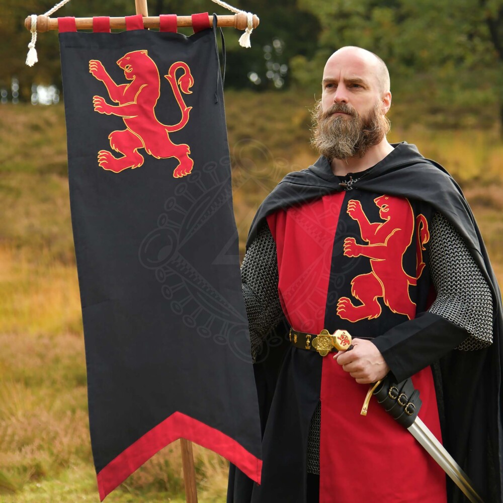 Kombiniere diesen Wappenrock mit dem passenden rot-schwarzen Banner mit Löwenmotiv und vereine Deine Truppe unter einem Symbol.