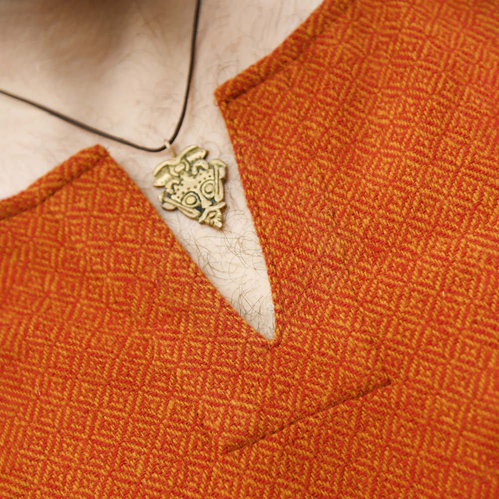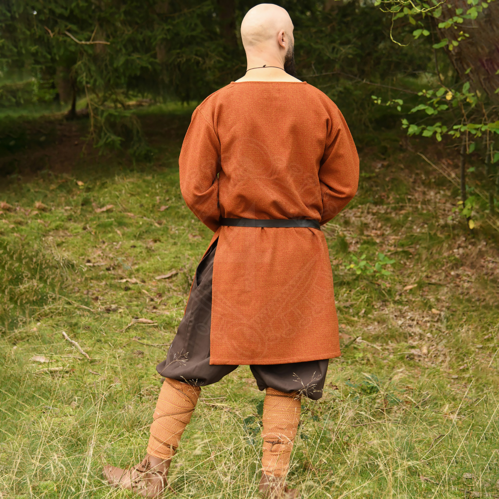 Möchtest du dich auf dem nächsten Mittelaltermarkt oder Reenactment-Event von der Masse abheben? Diese Tunika aus 100% Wolle im edlen Diamantköper (auch Rautenköper genannt) ist kein einfaches Bauernhemd. Sie repräsentiert den Stil eines wohlhabenden Wikingers, der Wert auf Qualität und Handwerkskunst legt. Mit ihrem kräftigen Orangerot und der schweren Stoffqualität (340 gsm) bietet sie nicht nur historischen Charme, sondern auch hervorragenden Schutz gegen Kälte. Weitere Produktinformationen ...
