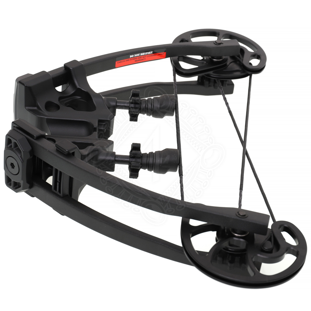 Ein besonderes Highlight sind die bereits installierten Sehnendämpfer. Sie minimieren das Schussgeräusch und absorbieren Vibrationen, was nicht nur den Komfort erhöht, sondern auch die Lebensdauer der Wurfarme verlängert. Das taktische schwarze Finish sorgt für eine professionelle Optik.