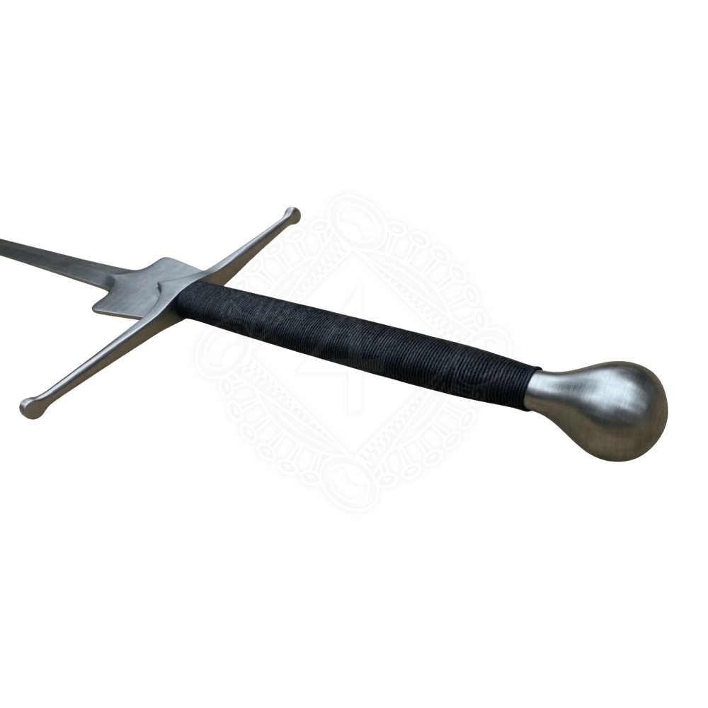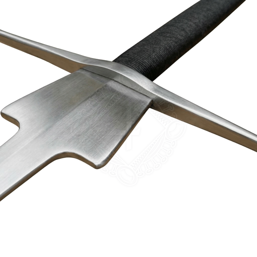 Dieses Schwert ist ein typischer Vertreter der Waffen, die im 15. und 16. Jahrhundert in europäischen Fechtschulen verwendet wurden. Die markante Verbreiterung der Klinge an der Parierstange, der sogenannte Schilt, diente dem besseren Schutz des Daumens bei speziellen Techniken und dem sicheren Abfangen der gegnerischen Klinge. Die Waffe ist primär für HEMA (Historical European Martial Arts), Techniktraining, Drills und Freikampf (Sparring) mit entsprechender Schutzausrüstung konzipiert. Die Klinge ist stumpf und hat eine gerollte Spitze, die die Kraft eines Stoßes auf eine größere Fläche verteilt.