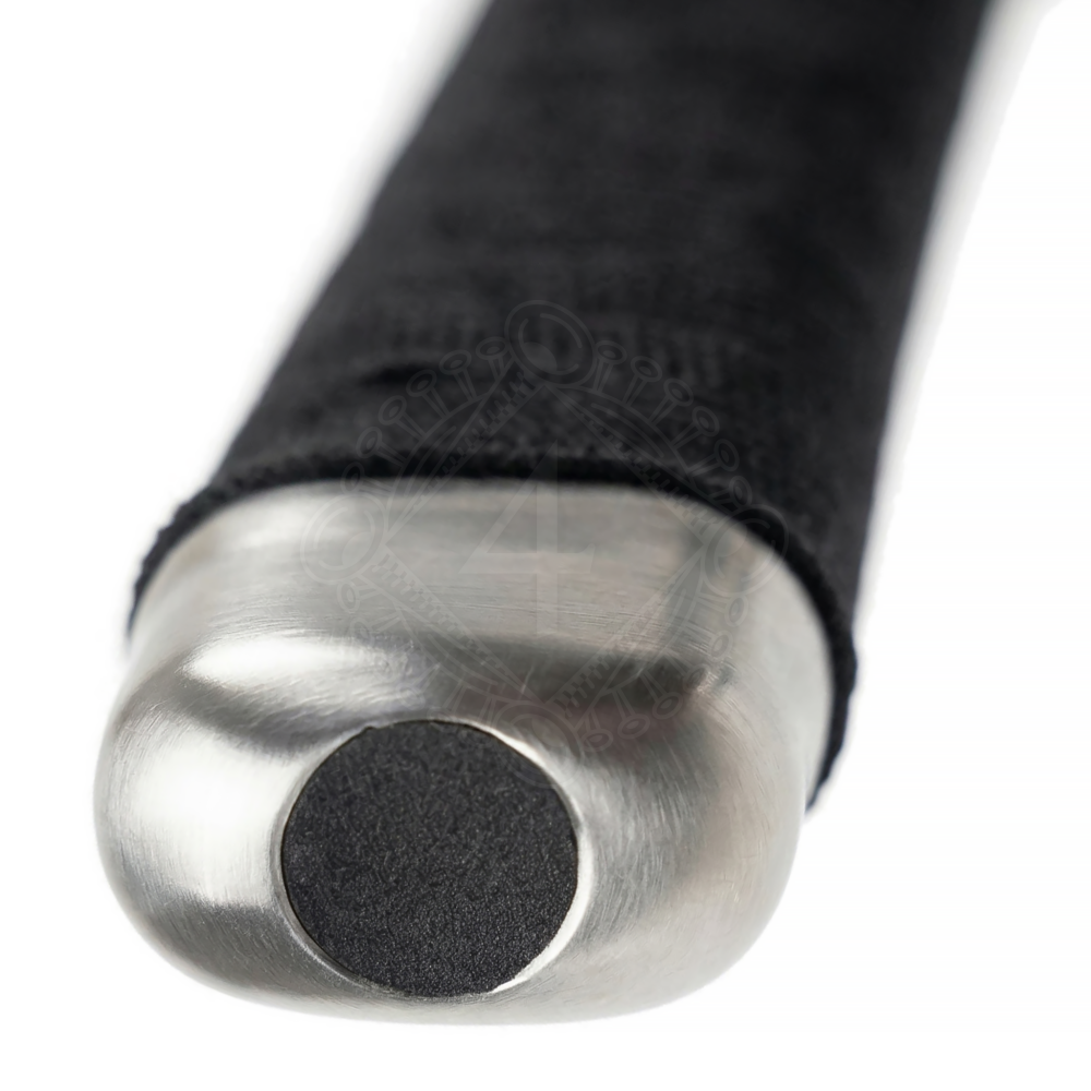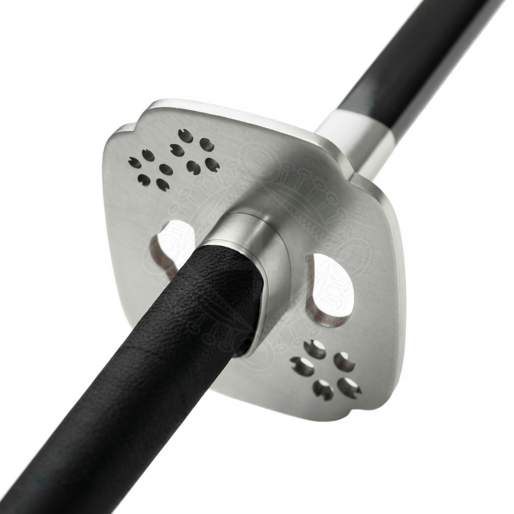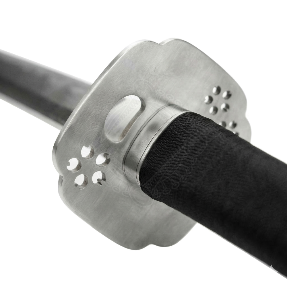 - Kashira (Knauf): Der einfache, abgerundete Stahlknauf ohne scharfe Kanten verhindert Verletzungen im engen Kontakt (Grappling).