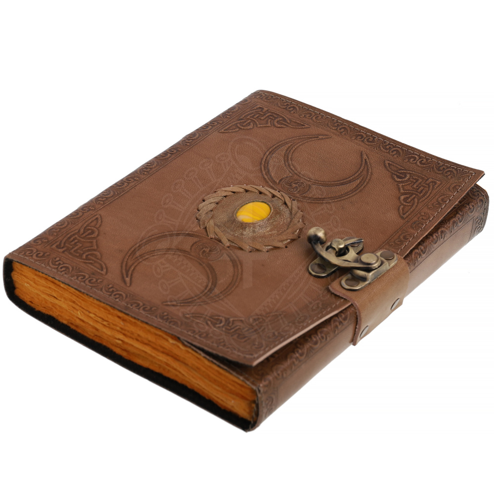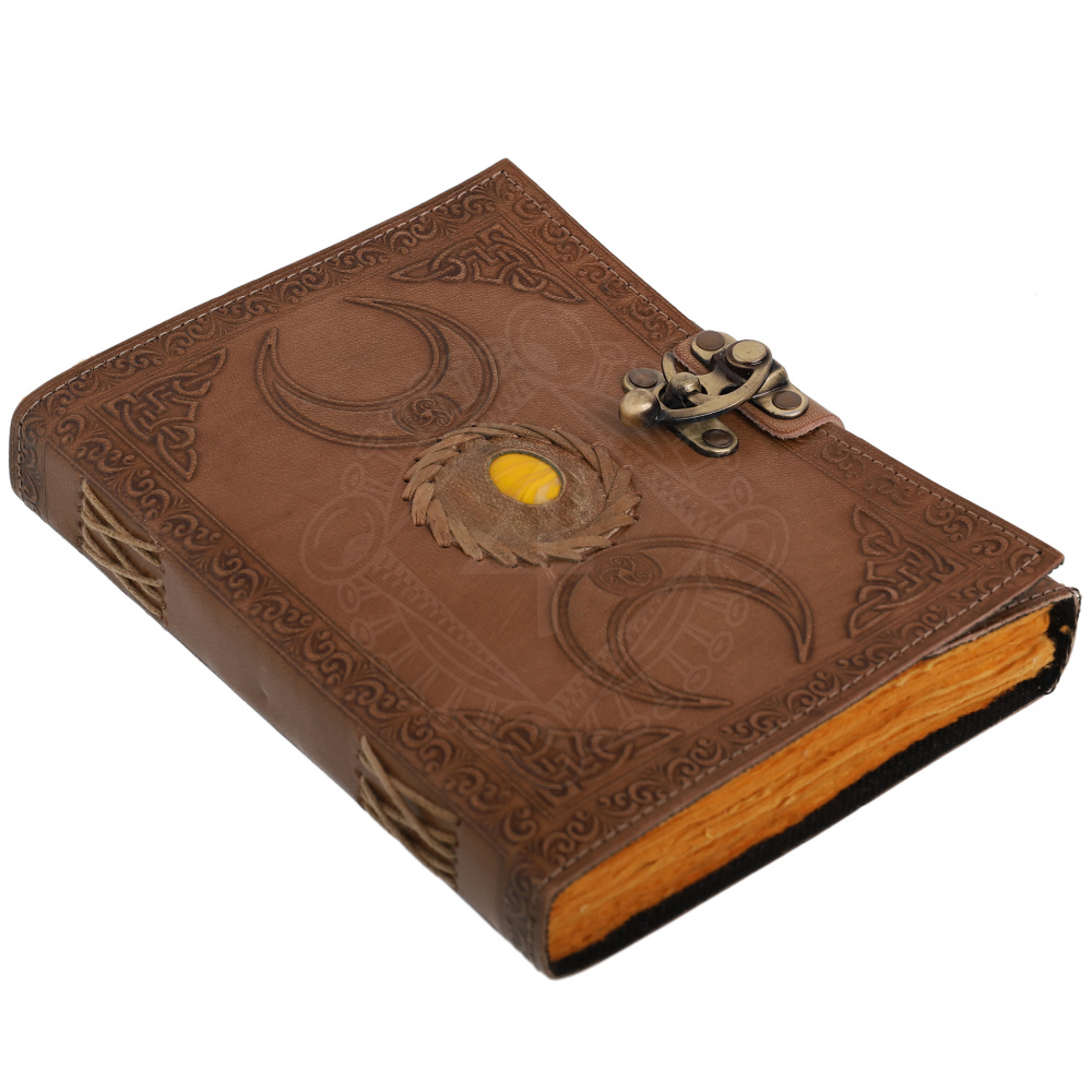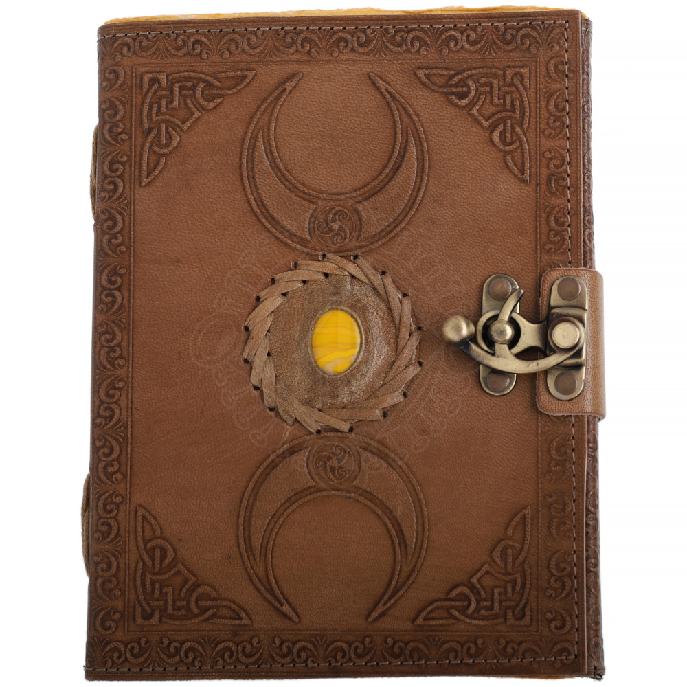 Mystisches Leder-Journal Dreifaltige Göttin mit Edelstein und keltischen Knoten