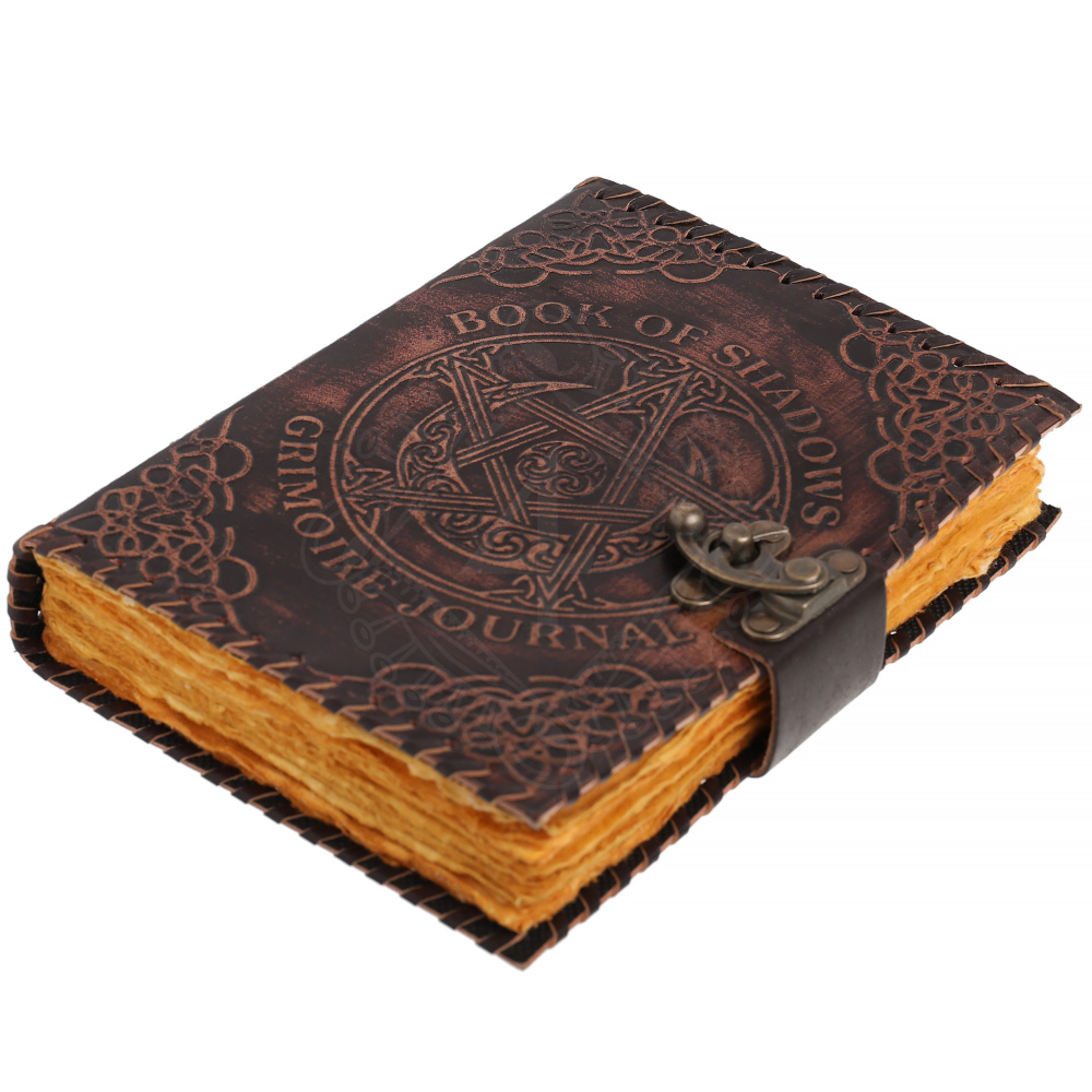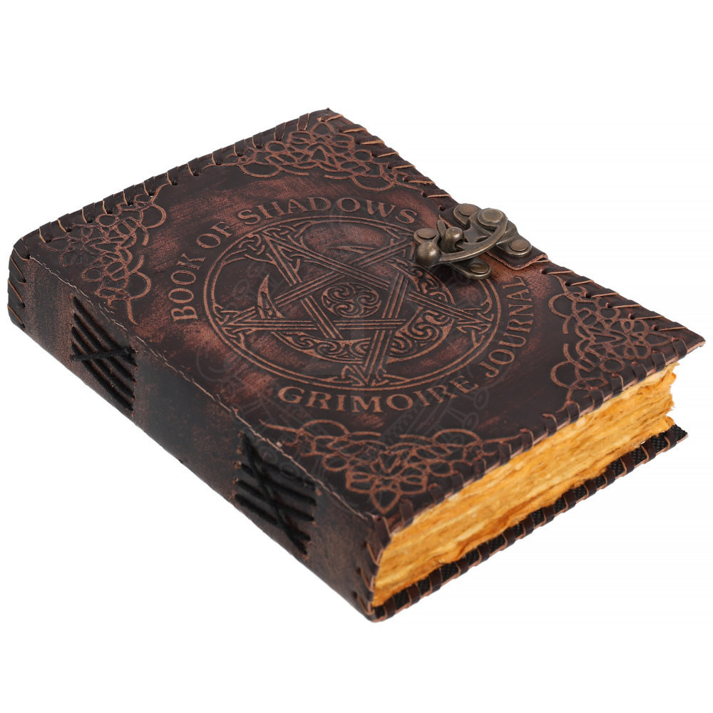 Leder-Grimoire Buch der Schatten mit Pentagramm-Relief und Büttenpapier