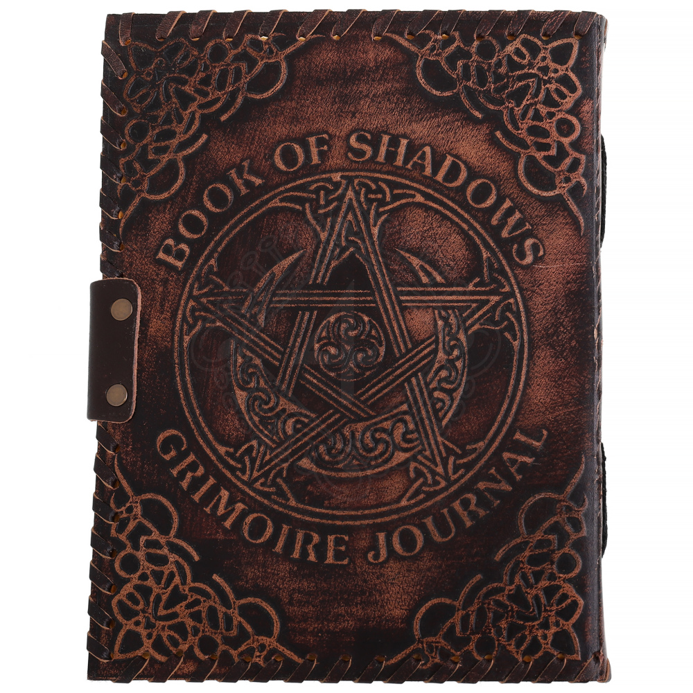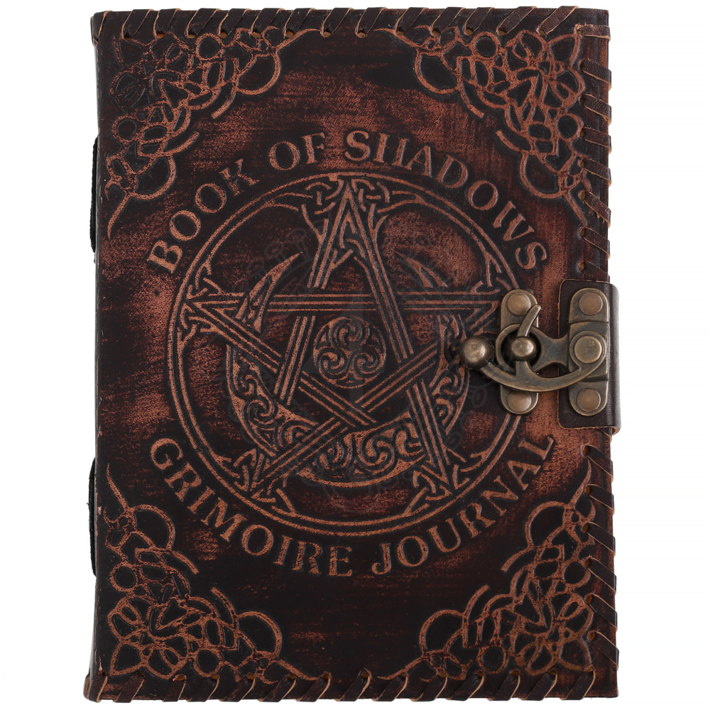 Der Begriff Book of Shadows wurde vor allem im 20. Jahrhundert im Rahmen der Wicca-Tradition bekannt, doch die Wurzeln der Aufbewahrung magischen Wissens in Lederbänden reichen tief ins Mittelalter und die Renaissance zurück. Damalige Grimoires enthielten Anleitungen für Tränke, astrologische Tabellen und philosophische Abhandlungen. Das Symbol des Pentagramms im Kreis ist ein uraltes Schutzzeichen, das die fünf Elemente und die Harmonie zwischen ihnen repräsentiert. Die keltische Triskele in der Mitte symbolisiert die Dreifaltigkeit und den ewigen Kreislauf des Lebens. Dieses Grimoire trägt ein Stück dieser Geschichte und handwerklichen Ehrlichkeit in sich.