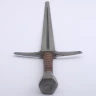 Die Schaukampfversion von diesem Schwert hat eine Schlagkante von 2-3mm und eine abgerundete Klingenspitze. Ein Schwert mit diesen Eigenschaften kann zum Schaukampf verwendet werden.