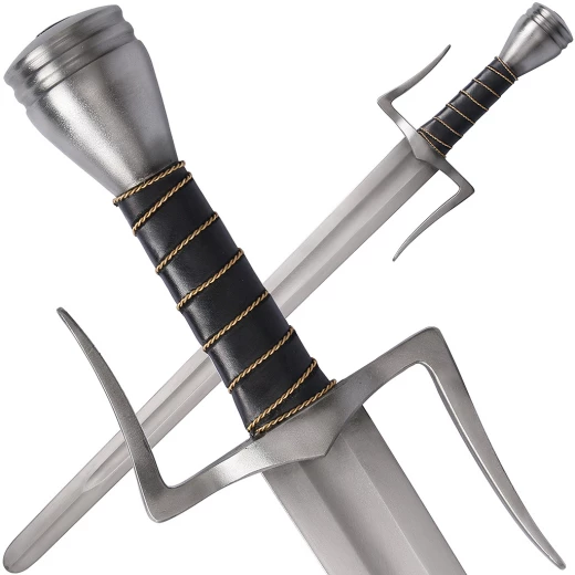 Die Schaukampfversion von diesem Schwert hat eine Schlagkante von 2-3mm und eine abgerundete Klingenspitze. Ein Schwert mit diesen Eigenschaften kann zum Schaukampf verwendet werden.