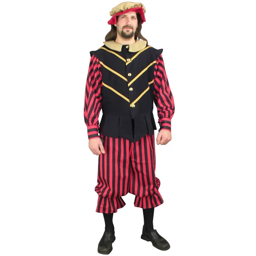 Das Kostüm des Kellners besteht aus Jacke und Hose. Die Jacke mit Schößen wird an der Brust geknöpft. Die Hose ist in der Taille und unter den Knien mit einem Gummiband versehen. Die Ärmel der Jacke und die Hose sind einheitlich gestreift. Zum Kostüm Kellner – Bedienpersonal im Restaurant wird eine stillvolle Mütze mitgeliefert. Weitere Produktinformationen ...